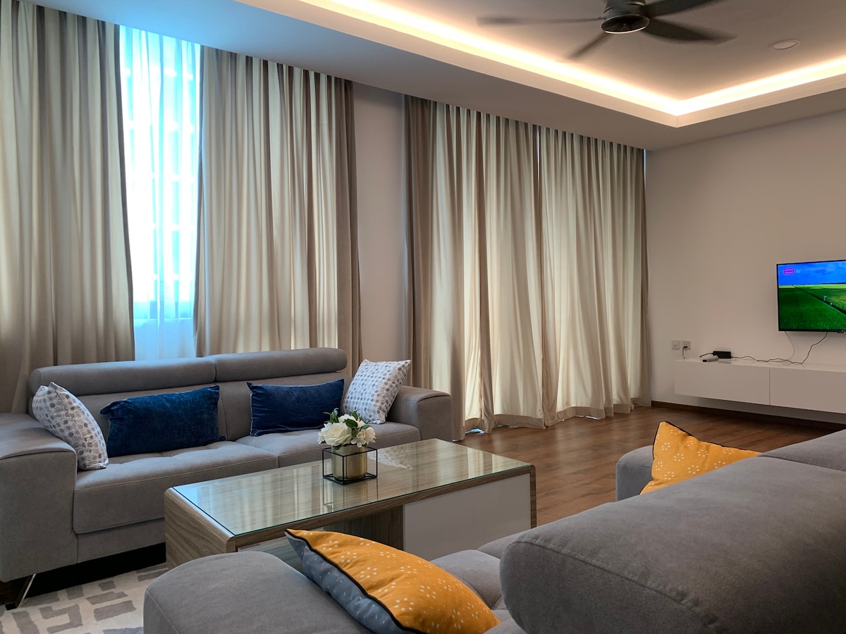 Willkommen in unserer modernen und luxuriösen Unterkunft, die von einem lokalen Innenarchitekten entworfen wurde! Unsere Unterkunft befindet sich in der Vivacity Megamall Jazz Suite 4, direkt über dem größten Einkaufszentrum in Kuching. Wir sind im 13. Stock mit großartigem Stadtblick. Die Vivacity Megamall verfügt über 4 Etagen mit Geschäften, Restaurants und Unterhaltung. Unsere Unterkunft verfügt über 2 Schlafzimmer und 1 Badezimmer, perfekt für bis zu 5 Personen. Perfekt für ein Paar, eine kleine Familie oder Geschäftsreisen. Grundausstattung und Handtücher werden bereitgestellt.