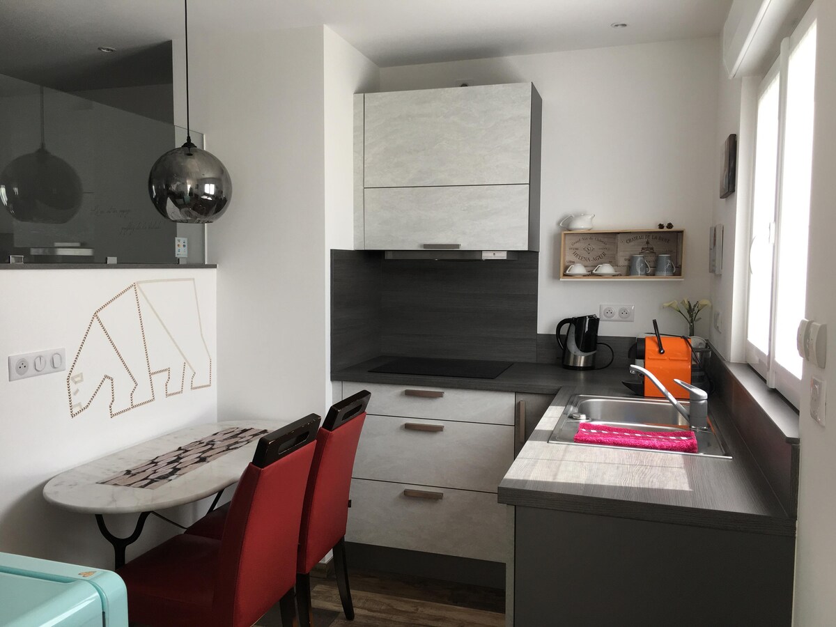 Die Wohnung Le Coin Vert ist ein ruhiger und gut ausgestatteter Ort, ideal für einen angenehmen Aufenthalt. Es bietet viele Vorteile wie Klimaanlage, Netflix, Netflix, Smart TV +120 Kanäle, Highspeed-WLAN, Waschmaschine und voll ausgestattete Küche (Backofen, Mikrowelle, Geschirrspüler, Kühlschrank mit Gefrierfach, Kühlschrank mit Gefrierfach, Kaffeemaschine, Kaffeemaschine, Toaster, Wasserkocher). Darüber hinaus haben Sie die Möglichkeit, jederzeit dank eines autonomen Eingangs anzukommen.