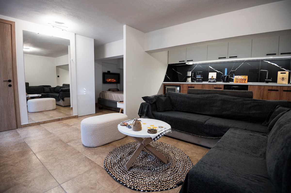 Komfortable Wohnung von 55 m ² in einem Mehrfamilienhaus im 1. Stock, Platz für bis zu 4 Personen. Voll ausgestattet mit allem, was für einen angenehmen Aufenthalt erforderlich ist. Nur 7 Fahrminuten vom Zentrum von Volos entfernt, kostenloser Parkplatz vor und um die Unterkunft herum.