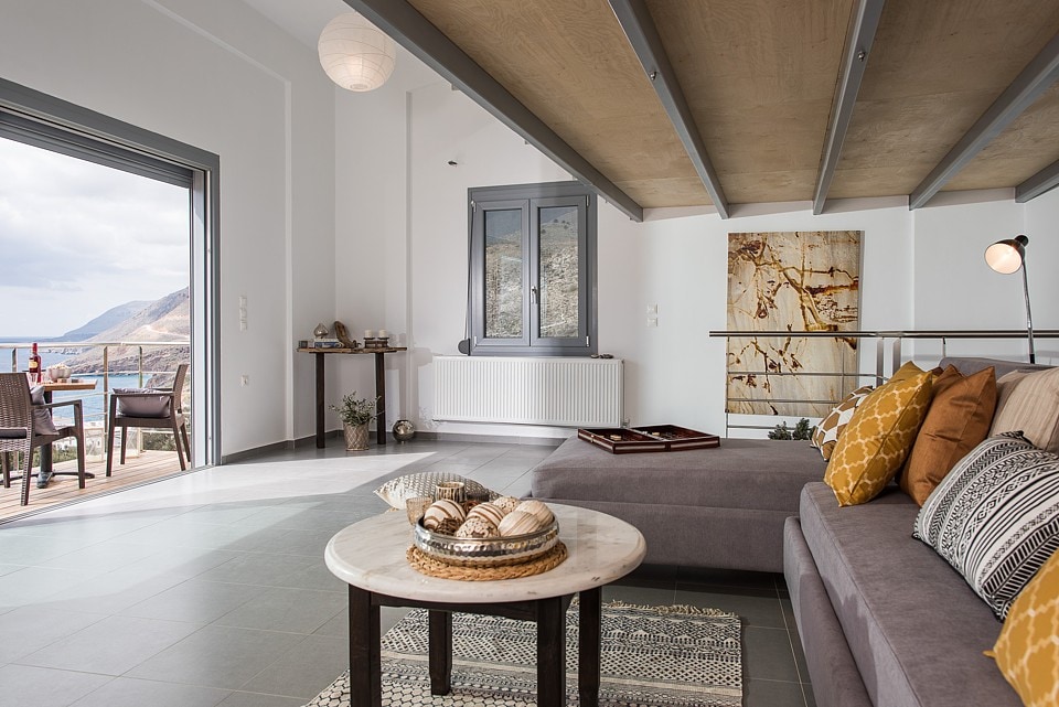 Domus Mare Villas are approved by the Greek Tourism Organization & managed by "etouri vacation rental management". Perched on the rocky coastline of South Crete above clear blue waters, Domus Mare Villas enjoy open sea views stretching toward Paximadia island. The two villas, Domus Mare I and II, form a small complex in a striking seaside location, directly facing the Libyan Sea and offering access to a secluded cove below.