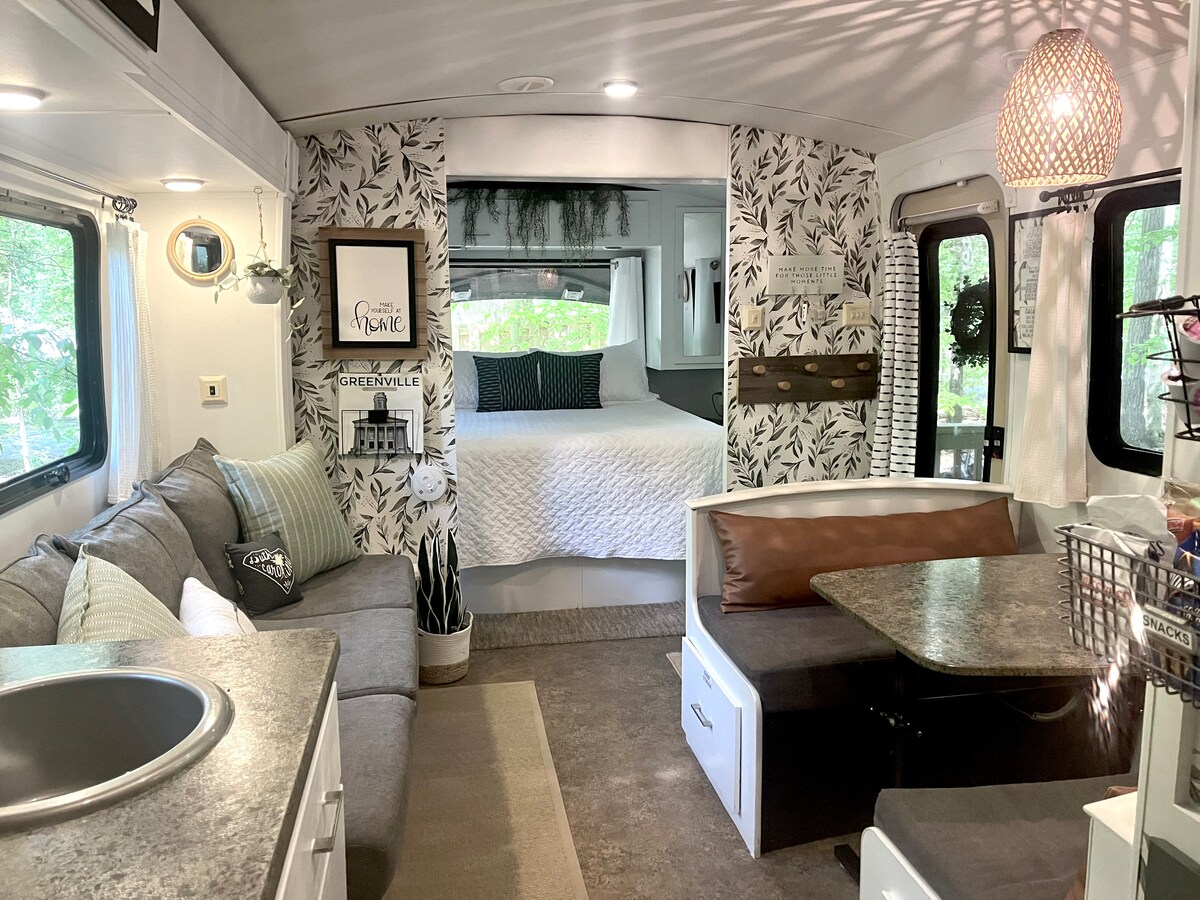 The Belle is nestled in a wooded setting with all the comforts of home and tastefully decorated. Push pause and enjoy coffee and breakfast outside on your private porch in peaceful surroundings. If you are a Pickleball fan a new 18 court complex has been built 1 mile from The Belle. Enjoy shopping, sightseeing or work then return to the comfort of The Belle. Grill, picnic area, fire pit, or porch sit. It’s all waiting for your enjoyment. 20 min downtown Greenville 10 min downtown Greer