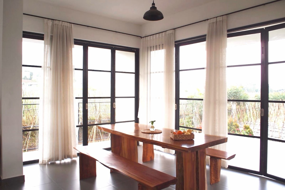 Wangiterrace, eine ruhige Villa am Hang, eingebettet in das üppige Grün von Dago, Bandung. Umgeben von hohen Bäumen und natürlicher Schönheit bietet es neblige Morgen, frische Bergluft und ein kühles Klima. Egal, ob du einen ruhigen Morgen auf der Terrasse genießt oder die nahegelegenen Cafés und Naturpfade erkundest, WangiTerrace ist für Entspannung und Verbindung mit der Natur konzipiert. Unsere Villa ist ideal für Familien, Paare oder kleine Gruppen und verbindet Komfort und Ruhe in einem der malerischsten Viertel von Bandung