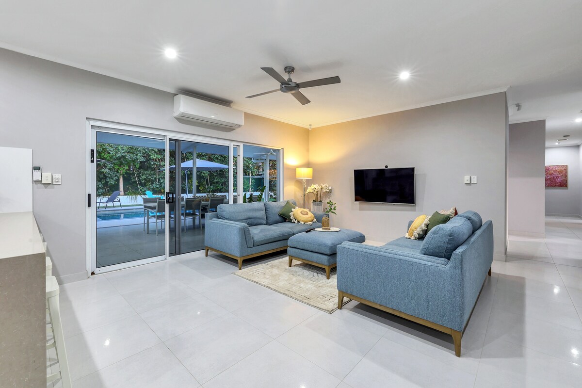 Dieses weitläufige Haus mit vier Schlafzimmern eignet sich für größere Unternehmensgruppen und Familien, die den perfekten Ausgangspunkt suchen, um Darwin und seine Umgebung zu erkunden. Zu den Merkmalen gehören große, geräumige Wohnbereiche, Schlafzimmer in Doppelgröße, fantastische Unterhaltungsbereiche im Freien mit riesigem Pool (mit Rollstuhlzugang), etablierte Gärten und eine perfekte Lage nur wenige Minuten vom CBD und einen kurzen Spaziergang vom Darwin Sailing Club und Trailer Boat Club entfernt. Sicher, modern, bequem und komfortabel.