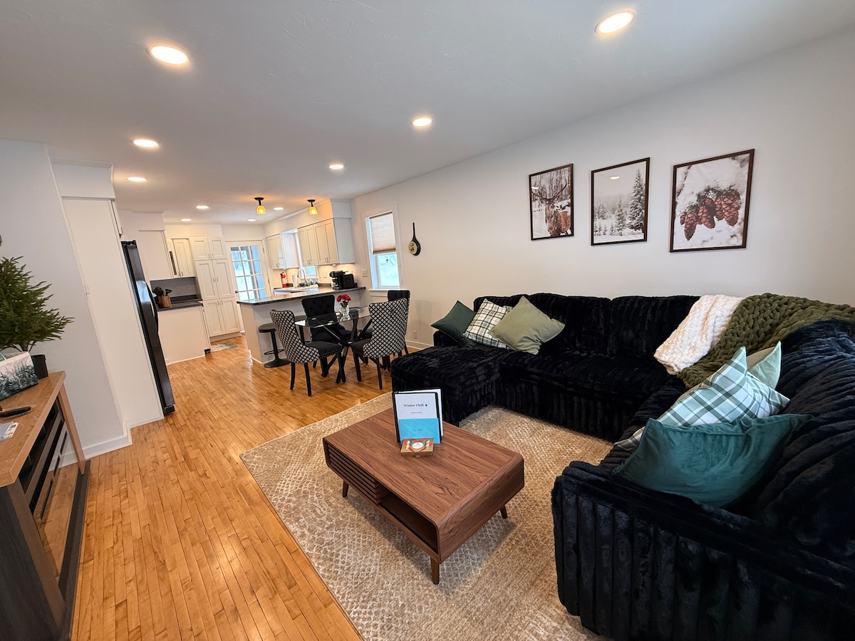 Willkommen im Hancock Hideaway – dein ganzjähriger Rückzugsort in Michigans wunderschöner Upper Peninsula! Dieses geräumige, haustierfreundliche Haus bietet Platz für bis zu 8 Gäste mit 3 gemütlichen Schlafzimmern, 5 Betten und einer bequemen Ausziehcouch. Entspanne dich auf der großen Terrasse nach einem Tag auf der Piste am Snowriver (5 Meilen), auf den Schneemobilpfaden (½ Meile entfernt) oder genieße die Sonne am Sunday Lake (nur die Straße hinunter).
