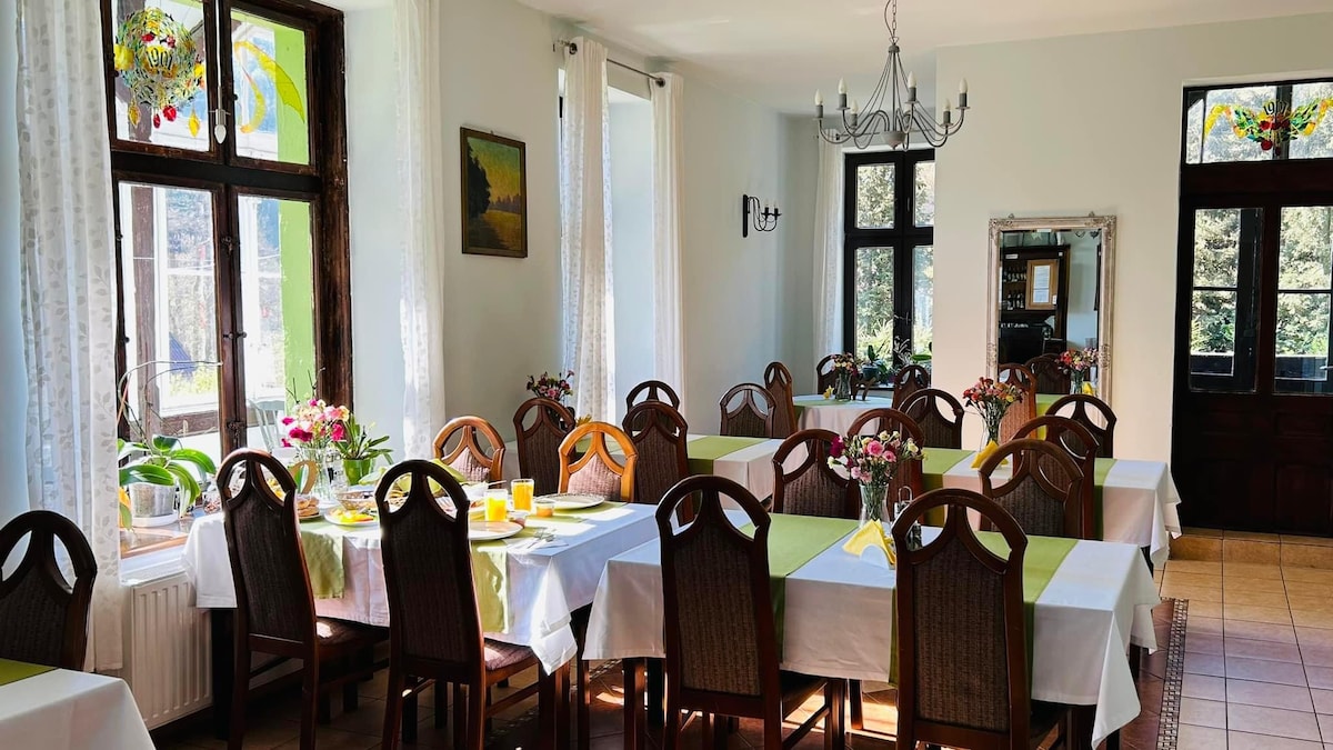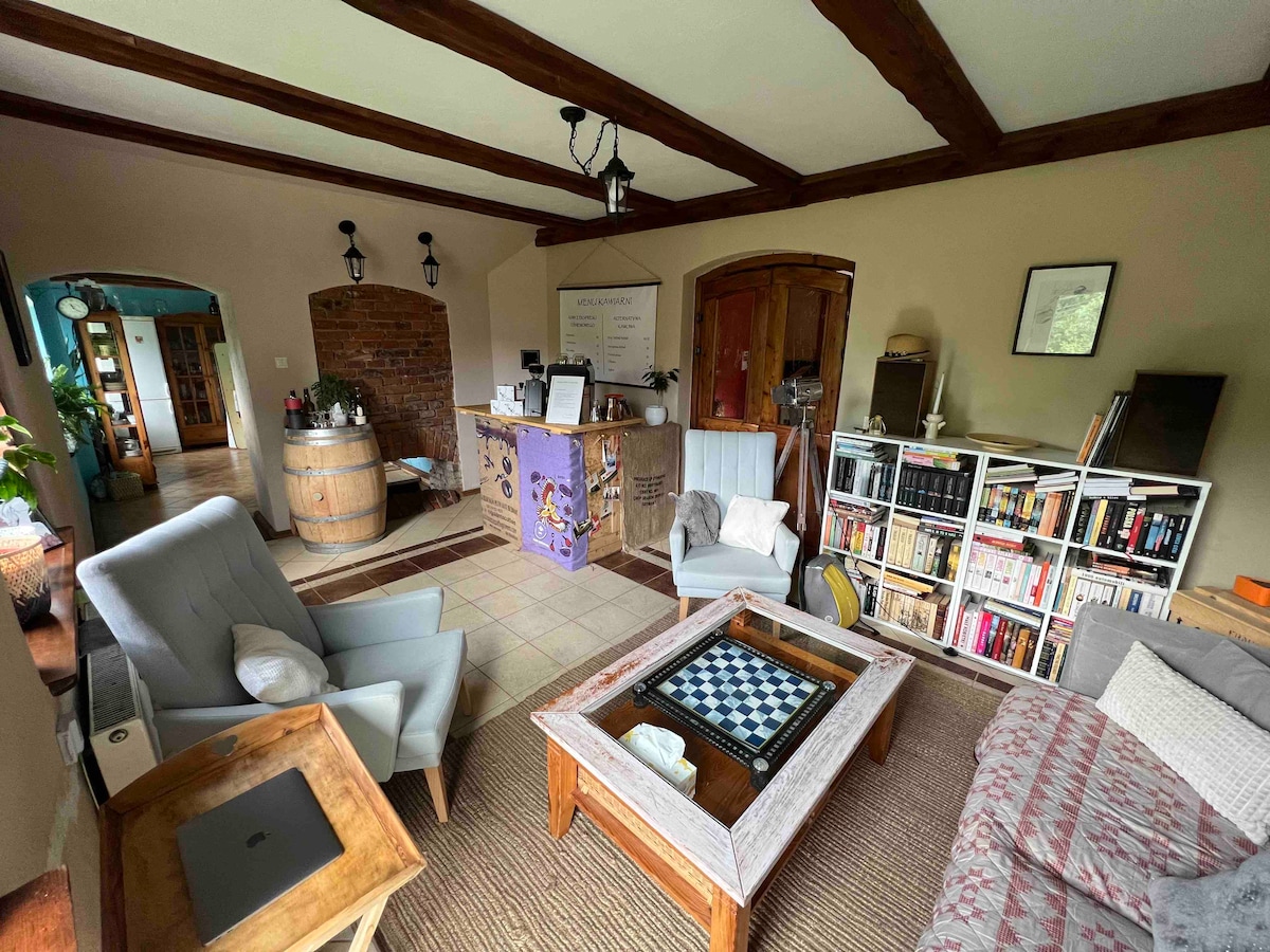 Willkommen in unserem Traumhaus in den Bergen mit Blick auf die Wielka Sowa und einem plätschernden Gebirgsbach. Umgeben von Fichten, Birken und Natur pur – ideal zum Entspannen oder Aktivsein mit Kindern. Nur 200 m entfernt liegt ein geschichtsträchtiger Wald mit dem geheimnisvollen NS-Komplex Włodarz, Teil des Projekts Riese. Ruhe, Natur und Geschichte – alles an einem Ort.