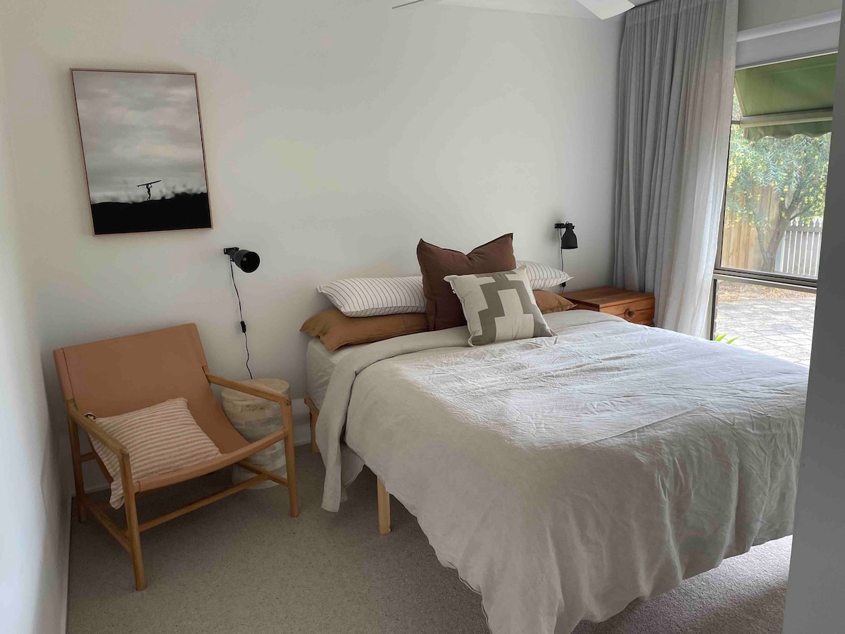 Gemütlicher Bungalow mit eigenem Bad, Strand-Dekor, extrem komfortables Queensize-Bett Kont. Frühstück wird gestellt. Privat, geräumig, vom Haus getrennt, ideal für ein Paar. Kleinkinder über 6 Monate [mobil - d. h. krabbeln und älter] werden aus Sicherheitsgründen nicht empfohlen Wir sind ein vielgereistes Paar, das gerne mit Menschen interagiert. Das Haus ist 90 Sekunden Fahrt/5 Minuten zu Fuß zu einem der besten Bade- und Angelstrände von Victoria, 10 Minuten zu Fuß zur Fähre, 4 Minuten Fahrt zu 5 Top-Weingütern und dem Golfclub.