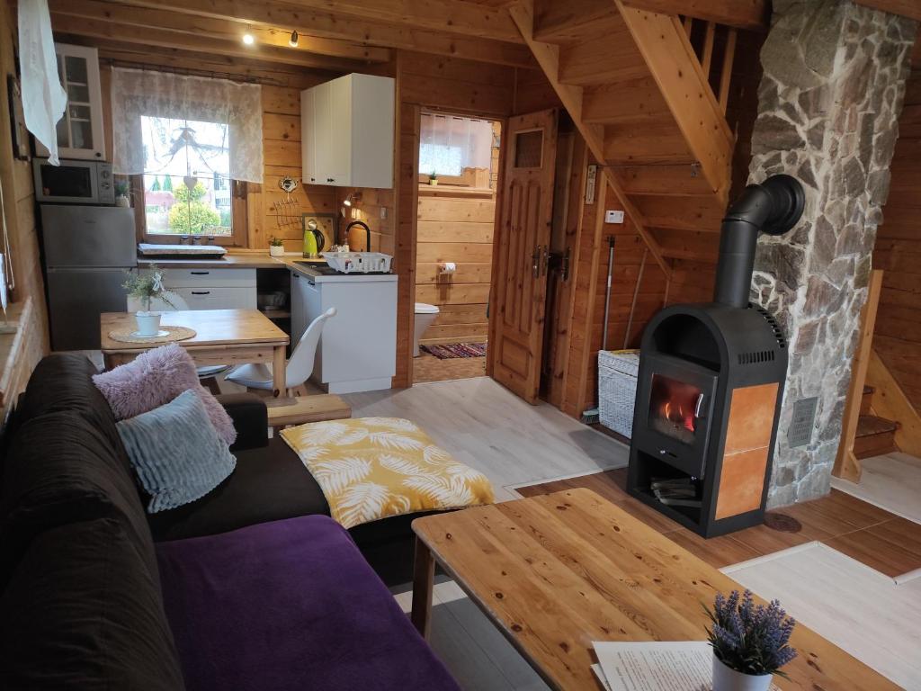Ein klimatisiertes Haus aus den 20er Jahren mit privater Sauna, Bania und separatem Eingang. Im Erdgeschoss befindet sich ein Wohnzimmer mit Kamin und einem großen Ecksofa, eine geräumige Küche mit Essbereich, ein Badezimmer mit Dusche und eine Sauna. Im ersten Stock befinden sich zwei Schlafzimmer, eines mit einem Doppelbett und das andere mit zwei Einzelbetten. Das Haus befindet sich auf einem eingezäunten Grundstück, grenzt an das Haus der Eigentümer und liegt am Fuße des Szczytnik-Berges. Die Fenster bieten einen Blick auf die Wiesen und Hügel.