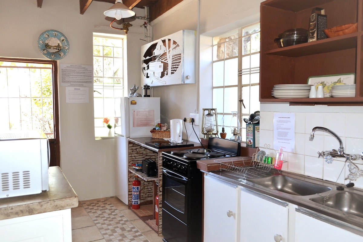 Wache im Gentle Presence Cottage mit einem atemberaubenden Bergblick vom Bett aus auf! Dieses Ferienhaus bietet Selbstversorgung für 6 Personen und wurde liebevoll mit einer Mischung aus Antiquitäten und modernen Möbeln eingerichtet, damit sich Gäste wie zuhause fühlen können. Dieses Ferienhaus wurde in den 1900er Jahren als Stall gebaut und ist eines der ältesten Gebäude in Clarens. Es wird angenommen, dass die Bauern mit dem Ochsenwagen ankamen, bevor sie das Nagmaal (Abendmahl) teilten. Es gibt 2 Cottages auf dem Grundstück, getrennt und mit eigenen Eingängen für Privatsphäre.