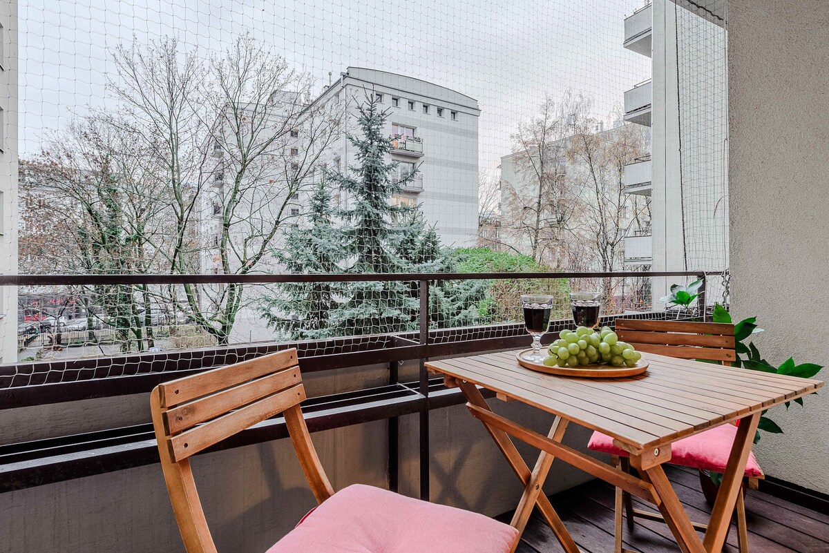 Willkommen in unserer tollen Wohnung im Herzen von Warszawa! Dieser stilvolle und gemütliche Rückzugsort verfügt über 2 komfortable Zimmer, die perfekt für 4 Gäste geeignet sind – eine ausgezeichnete Wahl für ein romantisches Wochenende oder eine Reise mit Freunden. Genieße den Komfort des geräumigen Wohnzimmers, in dem du dich nach einem anstrengenden Tag entspannen und unvergessliche Erinnerungen schaffen kannst. Mit modernen Annehmlichkeiten und einem stilvollen Design wird unsere Wohnung deinen Aufenthalt in Warszawа wirklich besonders und unvergesslich machen