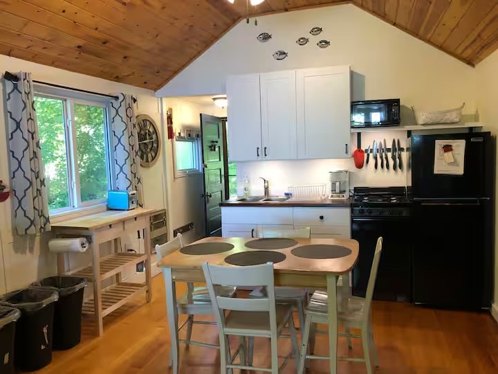 "Doc's Hideaway" sits at the tip of the Door County peninsula in beautiful Gills Rock, surrounded by lush woods on one side and the picturesque Bay and bluffs on the other. This historic mid-1800’s cabin has been lovingly renovated (admire the character of the original hand scraped wood walls and ceiling beams) with all the amenities and comforts of home. New in 2022: extra fast Wifi via Starlink (up to 105 mbps) and a high efficiency ductless AC and heating system.