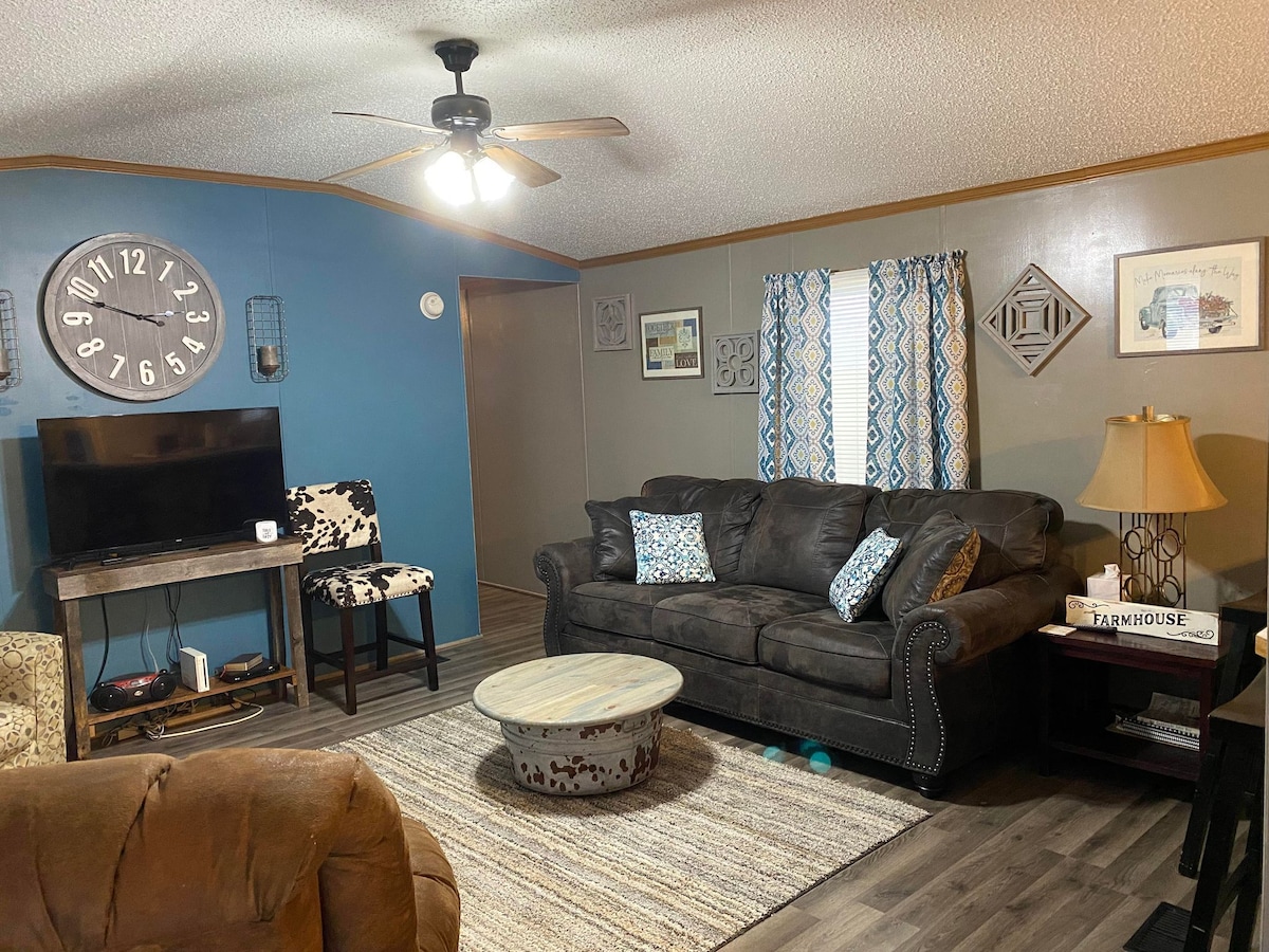 Whether looking for a place to rest while traveling through or you're coming to the area to visit family, and relax, our home may be perfect for you. Tucked away on 5 acres, our home offers a place to rest, play, and capture beautiful sunrises and sunsets. Our home has a fully stocked kitchen and linens provided. Gather your own eggs from the backyard chickens, taste some sweet honey from our hives and enjoy watching a cow or two graze. We hope you will come and stay.