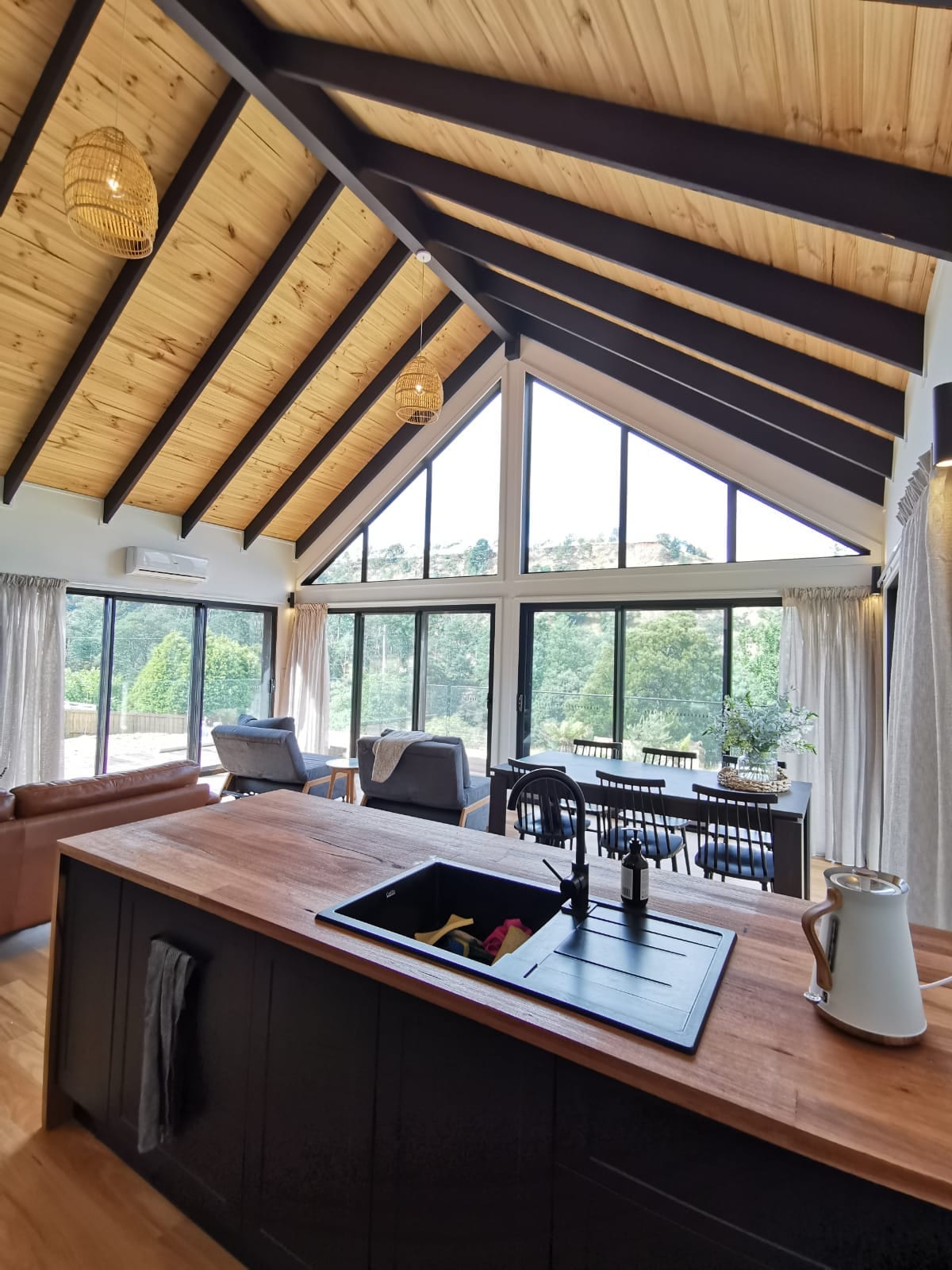 Kostenloser Champagner! Dieses architektonisch gestaltete Barndominium ist neu gebaut und einzigartig im Nordosten von Tasmanien. Mit Hydronischer Fußbodenheizung, Klimaanlage und superschnellem WLAN ist dieser Raum perfekt für einen romantischen Kurzurlaub oder eine große Gruppe. Geschmackvoll eingerichtet, passend zum einzigartigen Design, wird die Mischung aus Alt und Neu begeistern! Mit deckenhohen Fenstern im östlichen Aspekt ist der Blick im Tal mit der Morgensonne atemberaubend. Komplett mit Sitzecke Zwischengeschoss.