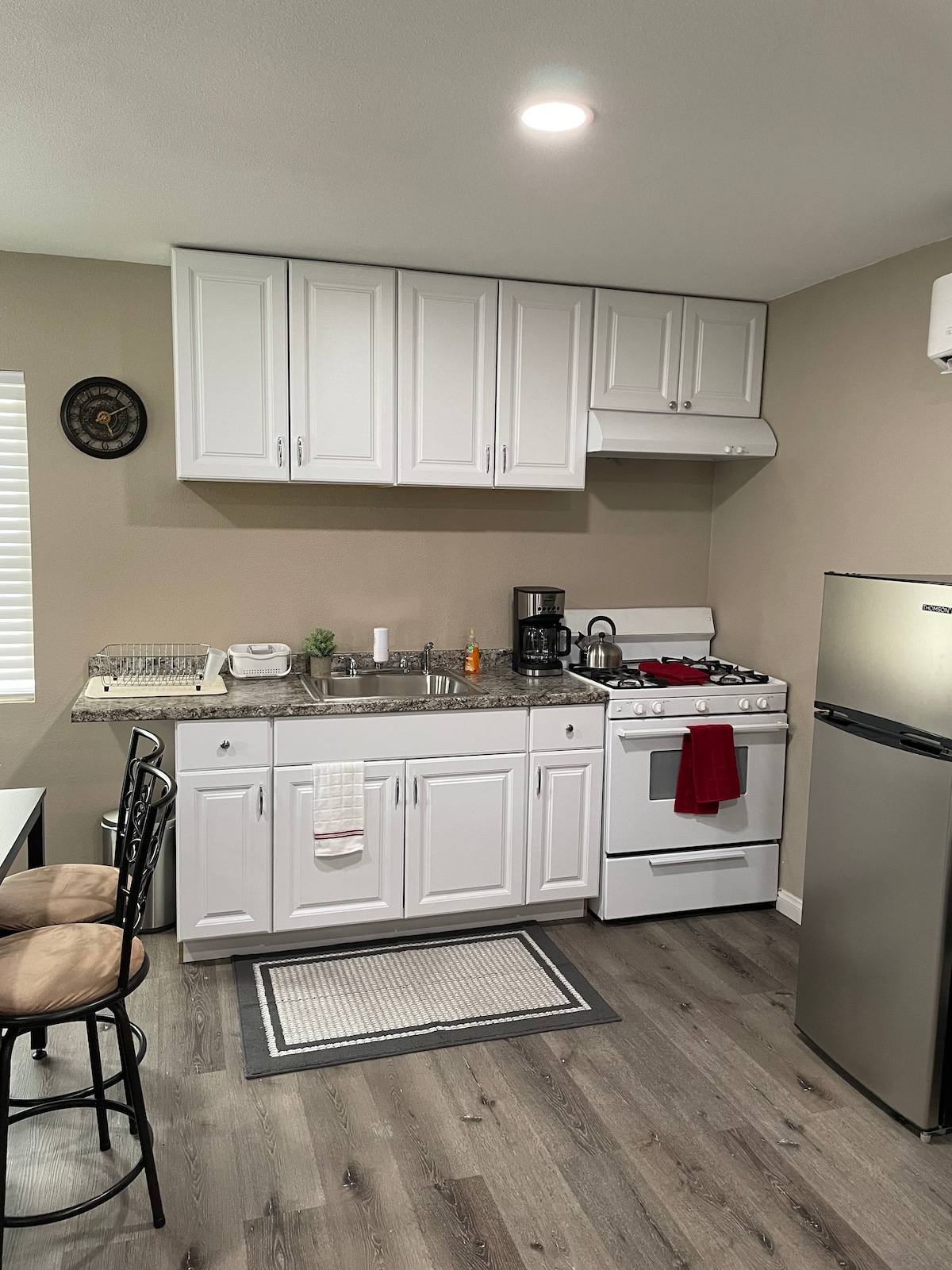 Dieses neu renovierte Studio befindet sich in der Innenstadt von Baldwin Park, nur wenige Gehminuten von allen Restaurants, Starbucks und Lebensmittelgeschäften entfernt. Es befindet sich in einem abgeschlossenen Grundstück und verfügt über einen eigenen Eingang, ein Badezimmer, eine Küchenzeile und einen Wohnbereich. Neuer 55-Zoll-4K-Fernseher, neue Küchengeräte, neue Möbel, alles im Studio ist neu. Das Studio verfügt über ein Queensize-Bett, einen Esstisch, eine Kommode und einen Kleiderschrank. Kostenloser Parkplatz auf dem Grundstück und rund um die Uhr Zugang zu kostenloser Wäsche.