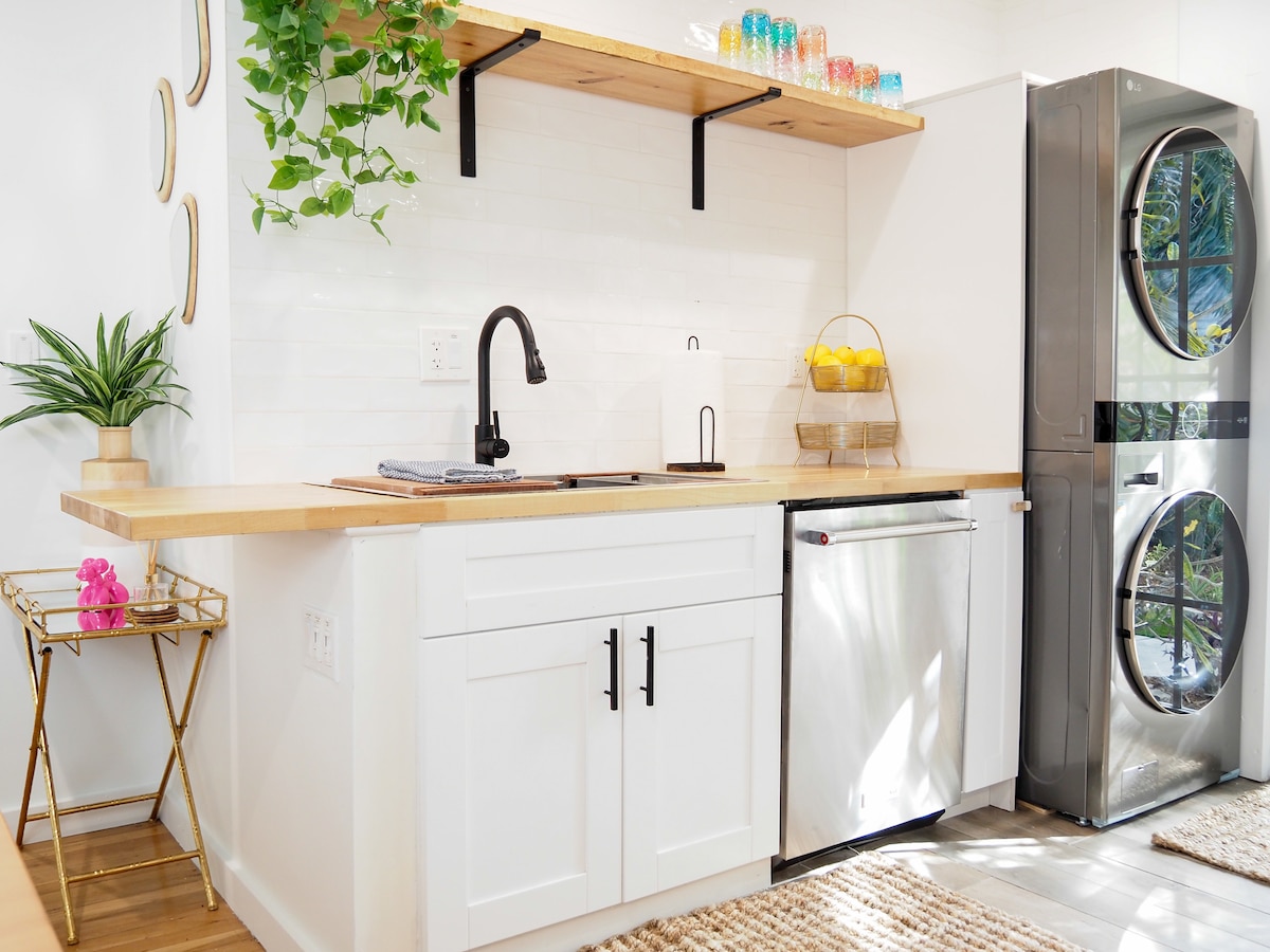 Entfliehe in den Pinky Palms, einem fröhlich rosa Bungalow im historischen West Palm Beach. Dieser Bungalow liegt nur drei Blocks vom Intracoastal Waterway und direkt über der Brücke von Palm Beach entfernt. Er ist zentral gelegen und nur sieben Minuten von den beiden besten öffentlichen Stränden und der Worth Avenue entfernt. Nur wenige Schritte von der „Antique Row“ in SoSo entfernt, befindet sich das Haus in der Nähe von Einkaufsmöglichkeiten, Antiquitäten, Golf, Tennis und weltberühmten Restaurants. Alles in der klassischen Palm Beach-Ästhetik eingerichtet.