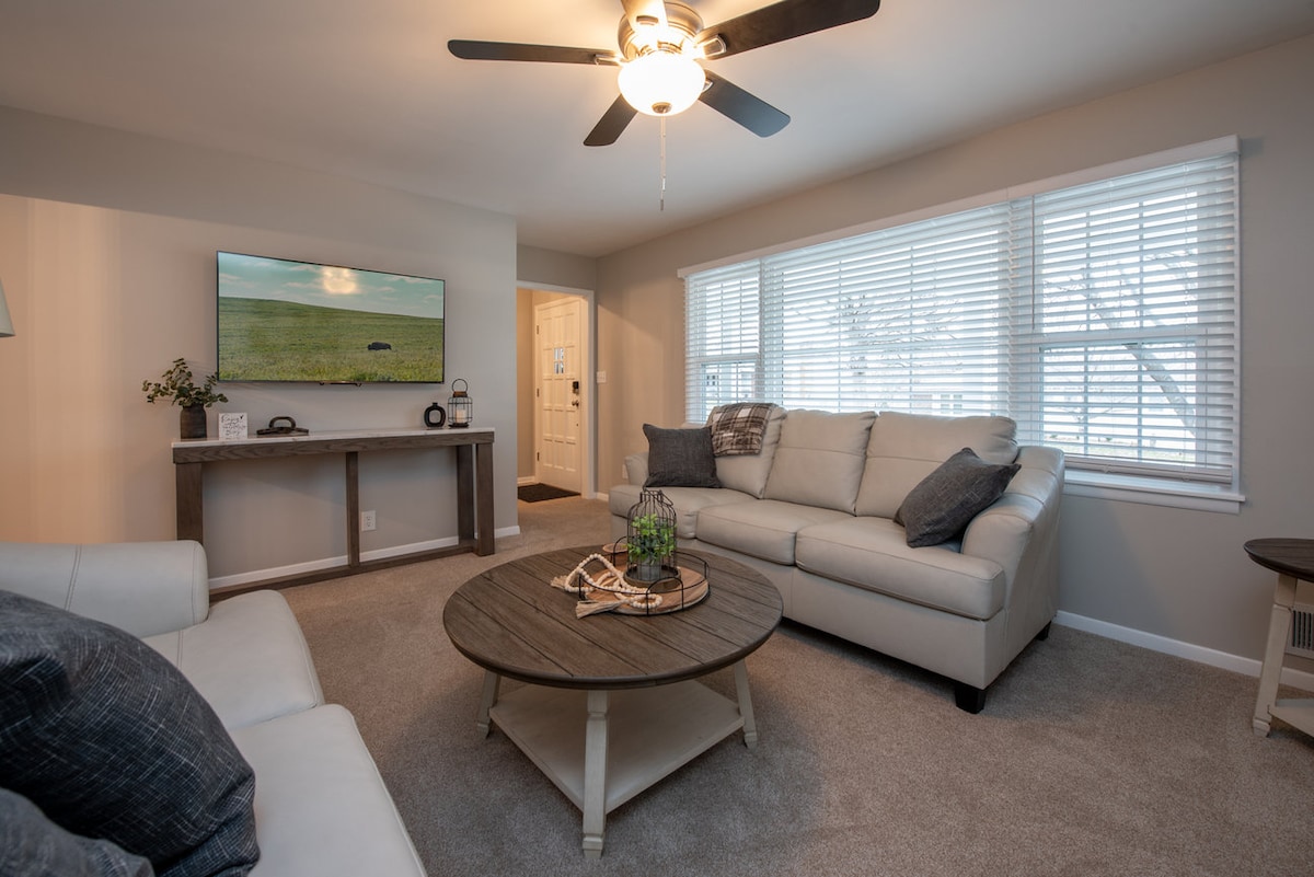 Der perfekte Kurzurlaub, der in der Nähe von allem ist! Genieße deine Privatsphäre in unserem restaurierten Bungalow von 1933 auf 18 Hektar nur wenige Minuten von der I-70 entfernt. Entspanne dich nach einem Roadtrip oder versammle deine Freunde für ein Konzert. Tauche in die Badewanne ein und erlebe deine beste Nachtruhe auf einer Plüschmatratze. Koche in einer gut ausgestatteten Küche oder iss in Restaurants, die nur fünf Minuten entfernt sind. Schlendere entlang gemähten Pfaden und lass die Kinder spielen! Wir sind tierfreundlich und geschäftsbereit mit Gigabit-Internet und einem Büro-Setup.