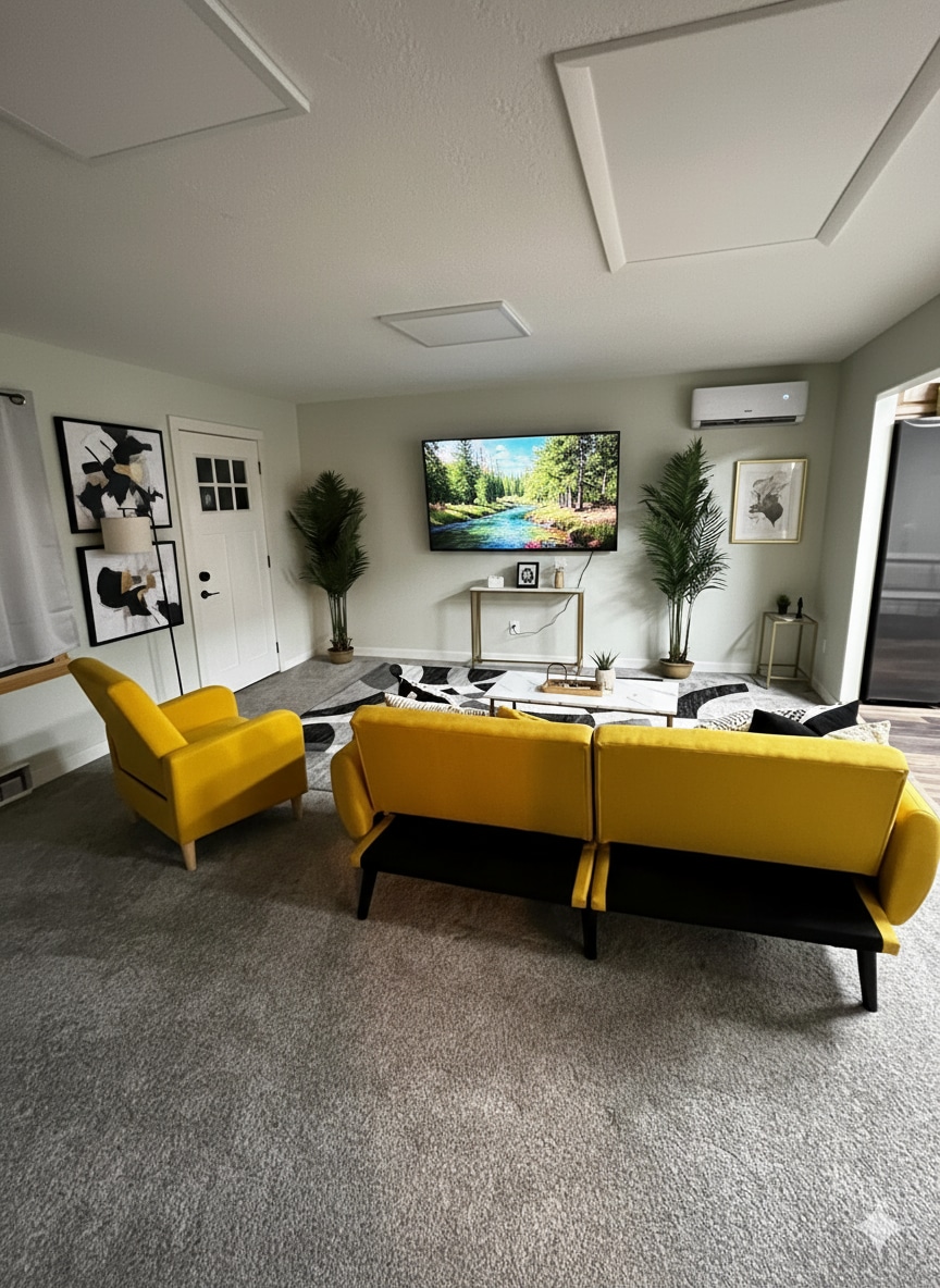 Genieße ein stilvolles Erlebnis in dieser zentral gelegenen Unterkunft. Die Küche ist komplett mit allen Annehmlichkeiten und Zubehör ausgestattet, einschließlich einer separaten Speisekammer und einem zusätzlichen Kleiderschrank. Der Wohnzimmerbereich verfügt über eine komfortable ausziehbare Couch in voller Größe mit einem Flachbild-Smart-TV. Das Schlafzimmer bietet einen erholsamen Schlaf auf einer Memory-Schaumstoffmatratze mit viel Platz zum Verstauen all deiner Kleidung. Jeder Wohnraum bietet individuell temperierte Einheiten für deinen Komfort.