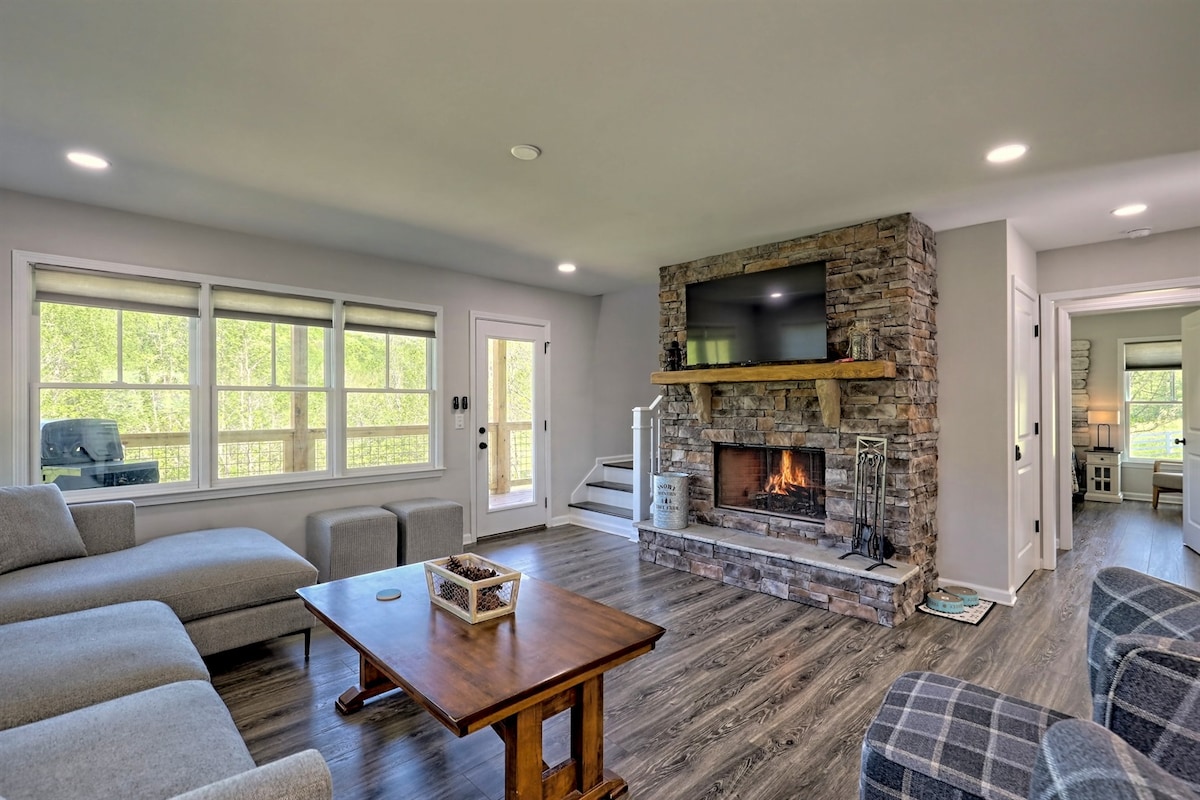 Willkommen in Bear Ridge, wo du dich mit deiner ganzen Familie entspannen kannst. Diese zweistöckige Hütte liegt weniger als eine Meile vom Stadtzentrum von Helen entfernt und liegt in den Wäldern direkt außerhalb der Stadtgrenzen. Du bist nah genug, um in die Stadt zu gehen, und abgelegen genug, um das Leben im Freien auf der Veranda oder einer der beiden hinteren Terrassen zu genießen. Die obere hintere Terrasse verfügt über einen Tisch für zwei Personen und bietet dir einen Platz in den Bäumen. Die untere Terrasse verfügt über einen Whirlpool, Sitzgelegenheiten im Freien und einen Gasgrill, damit du dich wie zu Hause fühlen kannst.