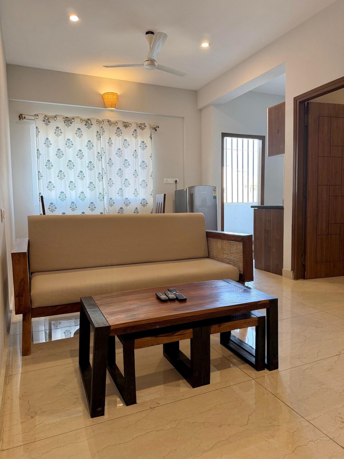 Erlebe einen warmen, gemütlichen Aufenthalt in dieser stilvollen 2BHK-Wohnung in Gunjur, in der Nähe der Varthur Road und des Tech-Hubs von Bangalore. Perfekt für Geschäftsreisende und Familien, bietet es 2 Doppelschlafzimmer, 2 moderne Badezimmer, einen sonnendurchfluteten Wohn- und Essbereich, einen Balkon, einen Hauswirtschaftsraum, schnelles WLAN, einen 4-Rad-Parkplatz, eine voll ausgestattete Küche mit allem Notwendigen und Geysire in beiden Badezimmern. Hausmeister:in von 9:00 bis 16:00 Uhr verfügbar. Spaziere zu den besten Kneipen wie Nusa & Old Mill. Genieße großen Komfort, Sicherheit und unschlagbare Konnektivität!