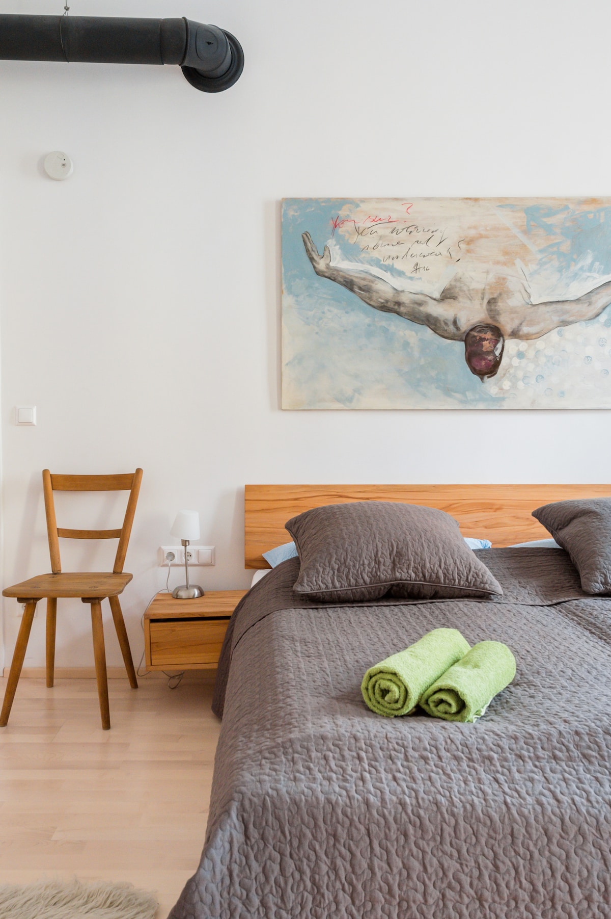In dieser Wohnung kann man nicht nur übernachten, sondern richtig wohnen. Holz und Naturmaterialien sorgen für eine angenehme Atmosphäre und laden dazu ein, länger zu bleiben. Das Badezimmer mit freistehender Badewanne ist besonders großzügig gestaltet - Sie werden es lieben.