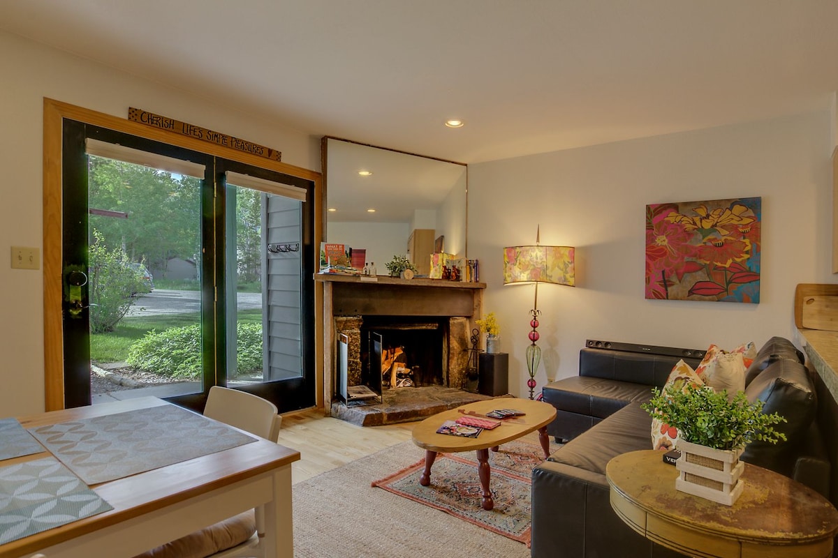 **Die Einheit hat einen neuen Kamin/eine neue Ecke!** Diese Eigentumswohnung im ersten Stock in einer ruhigen Ecke des praktischen und charmanten Aspens West Bank Viertels ist der perfekte Ort, um deine Bergabenteuer zu planen, zu genießen und dich auszuruhen. Blicke von der süßen kleinen Terrasse aus auf den Elch oder hinauf zum Rendezvous Peak und der Seilbahn. Bitte beachte, dass es eine Twin XL Leseecke gibt, die als Schlafplatz genutzt werden kann, und eine schmale Koje, die für eine jugendgroße Person im Wohnzimmer geeignet ist.