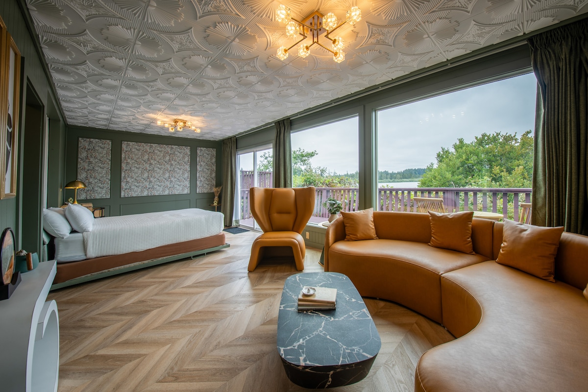 Buche die Vanilla Villa @ The Florentine Waterfront Hotel – ein einzigartiges Erlebnis weniger als 10 Minuten von der Altstadt von Florenz entfernt, wo du mit dem besten Sonnenaufgang an der Oregon-Küste aufwachen kannst! Diese neu renovierte Hütte verfügt über 1 privates Schlafzimmer, ein Murphy-Bett im geräumigen Wohnzimmer, eine voll ausgestattete Küche und kuratierte Akzente mit maßgefertigten Möbeln für ein wirklich einzigartiges Erlebnis! Dieses historische Anwesen verfügt über eine private Bootsrampe und einen Dock mit einigen der besten Kajak-, Vogelbeobachtungs- und Angelmöglichkeiten!