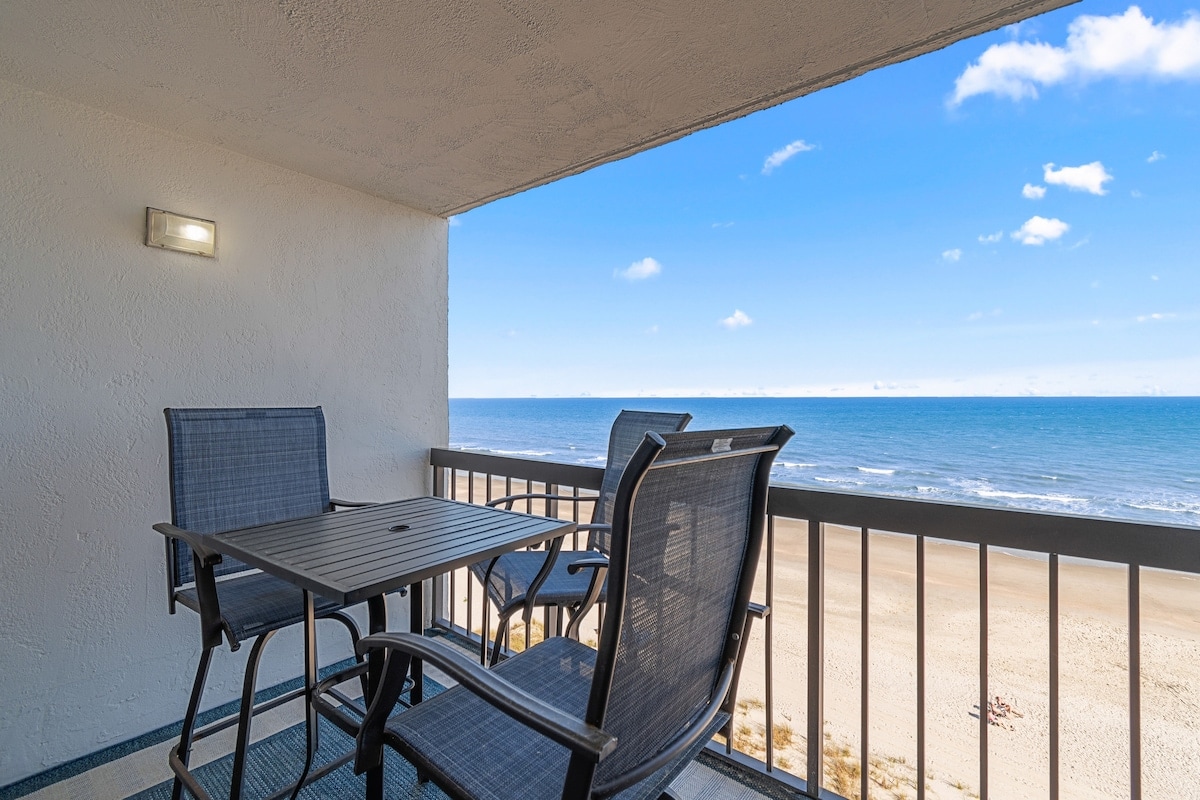 Enjoy an unforgettable stay for you and your group of up to 8 in this top floor, ocean front condo. Sit on the balcony overlooking the ocean as you listen to the waves while you sip your warm cup of coffee or refreshing cocktail. This 3-bedroom condo is the perfect spot for your next getaway with family or friends. Come create your next beach memory with us! MESSAGE me today for ideas on how to make your stay unforgettable and Military Discounts!