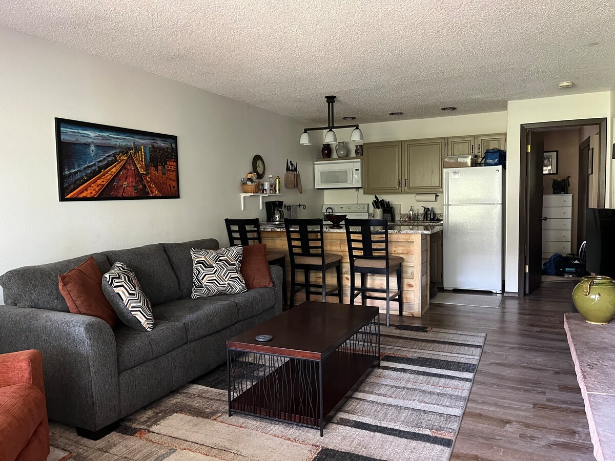 Willkommen im perfekten Winter Park! Diese gemütliche Wohnung mit einem Schlafzimmer und einem Badezimmer befindet sich in der Innenstadt und ist nur wenige Schritte vom Hideaway Park und seinen ganzjährigen kostenlosen Veranstaltungen entfernt. Mit 3 Queensize-Betten, darunter ein Schlafsofa und ein Murphy-Bett, bietet es bequem Platz für 6 Gäste. Genieße die beheizte Garage und den Skischrank für dein Fahrzeug und deine Schneeausrüstung. Entspanne dich nach Aktivitäten im Freien im Whirlpool, versammle dich an der Feuerstelle oder entspanne dich auf dem Balkon. Günstig in der Nähe von Restaurants, Pisten, Tubing-Hügel und Annehmlichkeiten