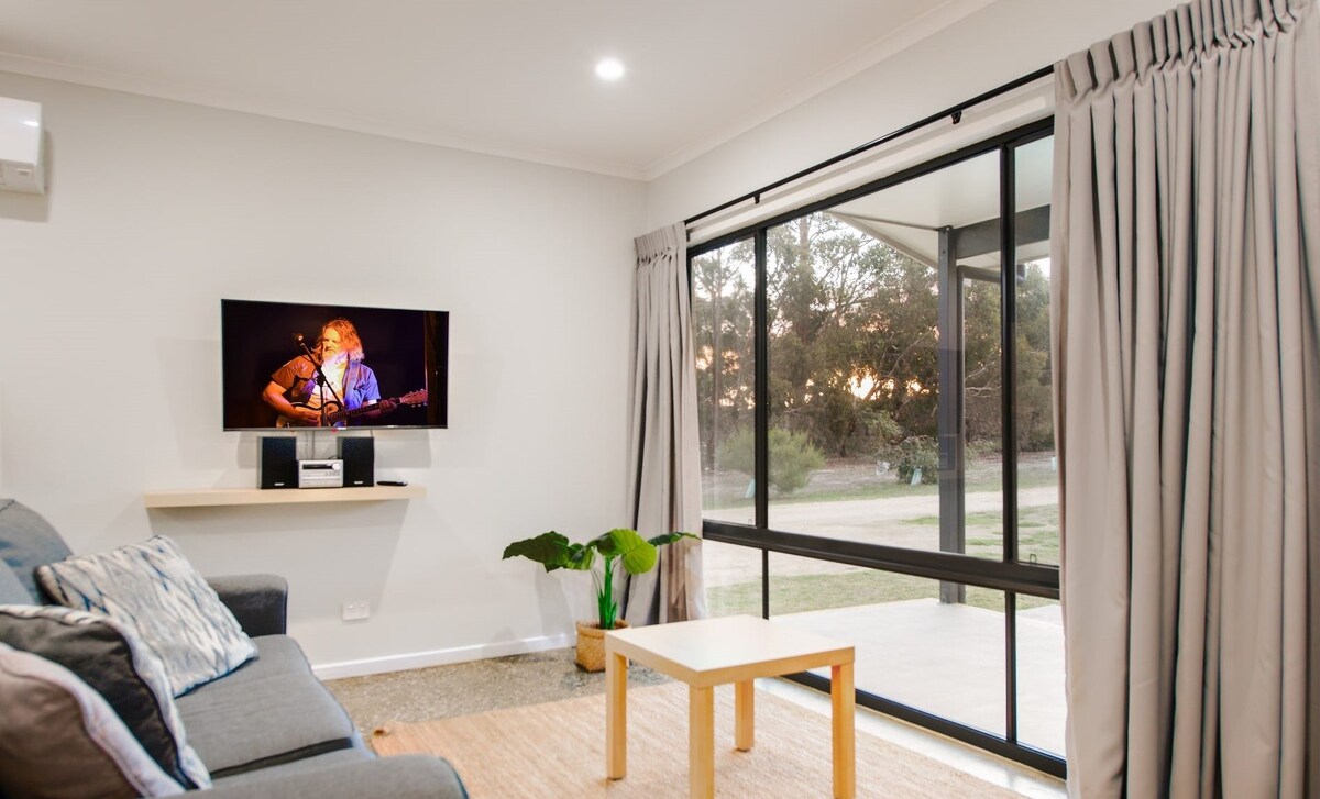 Dusty’s Run is our newly renovated, modern country home. A perfect location for a couples retreat or family getaway, allowing guests and their pets to unwind & relax. The property is situated on 60 acres of gum studded pasture & winter creeks, featuring a secure lawned house yard. The picturesque rural outlook is enjoyed from all rooms of the house. A cosy central fire adds warmth to the open plan kitchen & living areas. Emu Bay and Kingscote are a short 10 min drive away.