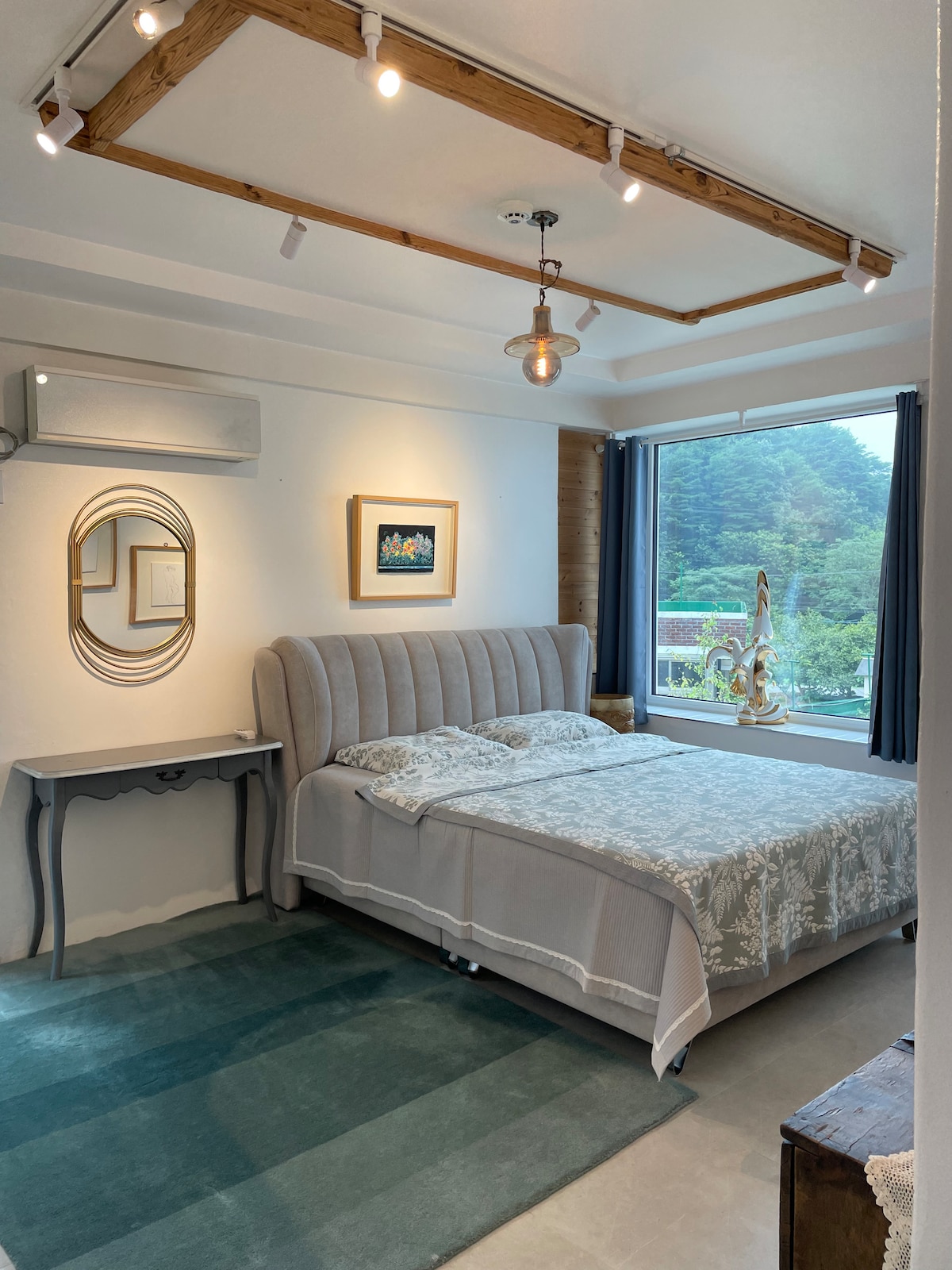 Dies ist eine windige Hügelpension auf dem Gipfel des windigen Hügels von Nongoldam-gil, die niedlich und voller Emotionen ist, mit dem Mukho-Leuchtturm in Donghae. Es gibt ein riesiges Meer vor dir, und du hast den besten Meerblick, wo du einen fantastischen Sonnenaufgang genießen kannst, auch wenn du liegst. Du kannst den Mukho Port Fish Market besuchen, wo du frisches Sashimi genießen kannst, und Dochjaebi Golf Sky Valley und das Hae Rang Observatory sowie das Haupt-Ostmeer innerhalb von 5-10 Minuten mit dem Auto erreichen. Mangsang Beach, Golden Bat Cave, Mureung Valley und Chuwam, Hanseom Beach Sensory Road Es befindet sich in der Nähe Mit Familie, Liebhabern und Freunden, im Vorgarten, kannst du den Sonnenuntergang, den blauen Mond, die große Welle genießen, Du kannst auch verschiedene Arten von superkaltem Bier, lokalem Craftbier, Signature-Snacks mit sorgfältig ausgewähltem Wein und Mukho-Oktopus, Quesadilla, Gambas, Muschelsuppe, Käse-Schinken-Cracker-Brett und Barbecue genießen. Bitte sende eine Nachricht, da der Preis abhängig von der Anzahl der Personen bei der Nutzung des Grills hinzugefügt wird.