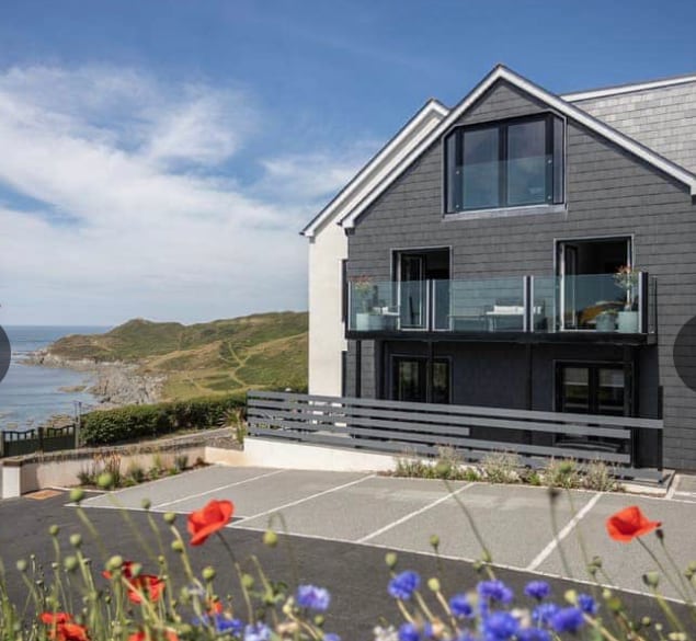 Die Strandhütte, Paradehaus. Unser luxuriöses Duplex mit 2 Schlafzimmern wurde kürzlich gebaut und ist Teil der prestigeträchtigen Parade House-Entwicklung im schönen Woolacombe, Devon. Hier findest du luxuriöse Unterkünfte zur Selbstverpflegung mit einem großen offenen Wohnbereich mit einem privaten Essbalkon im Freien. Du kannst auch deine eigene geschlossene Terrasse mit Whirlpool genießen und hast einen uneingeschränkten Blick auf den Woolacombe Beach, der nur 30 Sekunden zu Fuß vom Parade House entfernt ist.
