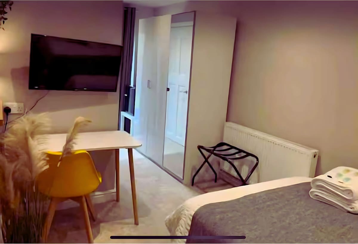 Eigenständiges, privates Nebengebäude mit eigenem Eingang und Parkplatz. Beinhaltet ein komfortables Schlafzimmer, eine Dusche im Zimmer, frische Handtücher, saubere Bettwäsche und eine hochwertige Matratze. Ausstattung: Kühlschrank, Küchenzeile mit Mikrowelle, Toaster, Wasserkocher, Bügeleisen und Haartrockner. Etwa 10 Gehminuten vom Bahnhof Stoneleigh (Züge nach Wimbledon und London Waterloo) und 5 Minuten von Bussen nach Surbiton, Kingston und Epsom entfernt. Sutton 3 Meilen, Epsom Downs 2 Meilen, A3 eine 10-minütige Fahrt.