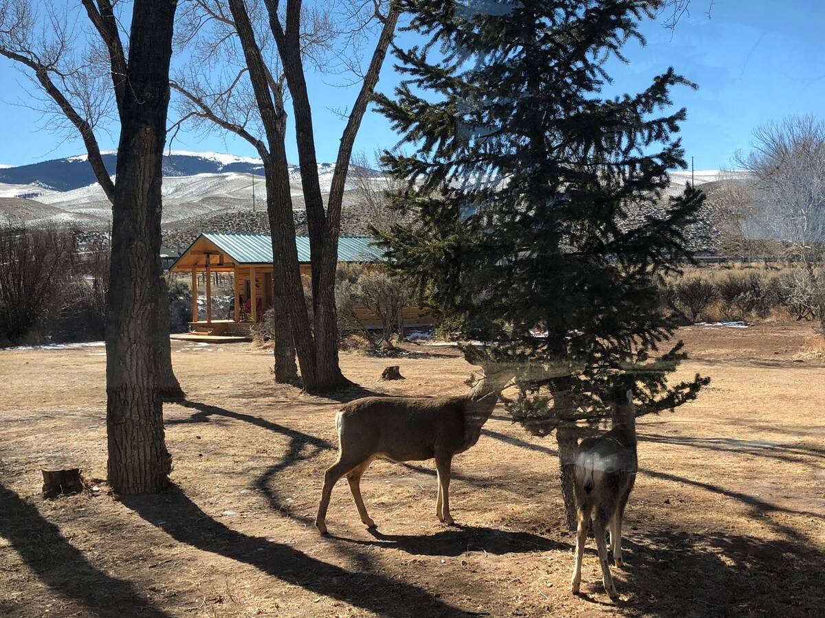 Diese 500 Quadratfuß große gemütliche Hütte liegt am Rande des Popo Agie River. Setz dich auf die Veranda, zünde das Lagerfeuer an, röste einen Marshmallow und entspanne dich. Es verfügt über ein Queensize-Bett und ein großes Schlafsofa. Am besten geeignet für zwei Erwachsene und ein Kind. Dies ist während der Hochwassersaison (Mai-Juni) kein kinderfreundliches Anwesen. Es gibt KEINE Zäune, die den Fluss blockieren. Hunde an der Leine erlaubt. Bitte KEINE Katzen. Schau dir auch unser Jurten-Inserat an. https://www.airbnb.com/h/yurtatgrassriver