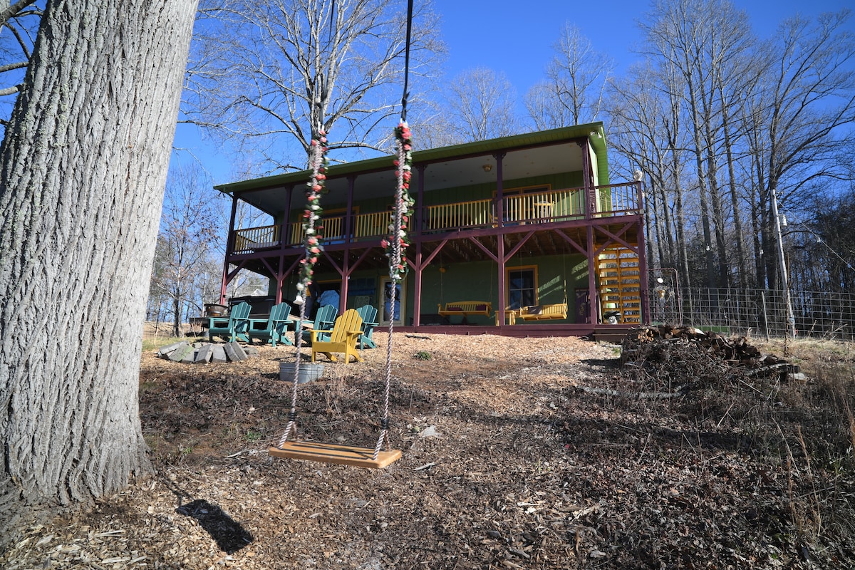 Cabin/Tiny Home. Relax & enjoy amazing mtn. views, 200 acres of trails, woods, pastures, farm, & fields. HURRICANE HELENE: TRAILS ARE NOT COMPLETELY ACCESSIBLE NOW DUE TO HELENE. Our trails & woods have been ravaged with 100's of trees down. Many trails are still not cleared. Our 1.5 mile upper ridge trail loop and one river trail are now open. Pastures and fields are mostly cleared and all areas around the cottage are completely cleared with amazing long range views of fields and mountains.