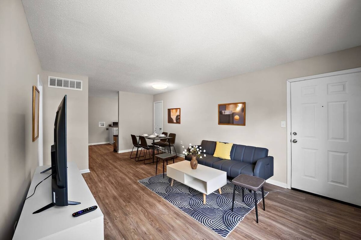 Diese neu renovierte Wohnung ist ideal gelegen, nur 10 Minuten von Amazon-Arbeitsplätzen entfernt, was sie zu einer fantastischen Wahl für Bauarbeiter oder Geschäftsreisende macht. Tritt ein, um einen geräumigen Wohnbereich mit brandneuen Möbeln zu entdecken, die sowohl auf Komfort als auch auf Stil ausgelegt sind. Egal, ob du dich nach einem langen Tag entspannst oder etwas Arbeit erledigst, du wirst den Raum einladend und funktional finden.