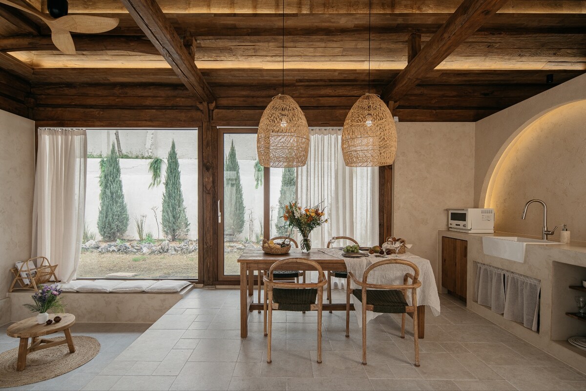 Dieses authentische Jeju-Steinhaus (Hanok-Stil) wurde 1866 erbaut und mit allem modernen Komfort renoviert. Eingebettet zwischen Gimnyeong-Gassen, am Olle-Wanderweg Nr. 20 gelegen, nur 3 Autominuten vom Strand Gimnyeong entfernt, ist es der perfekte Ort für dich, um den authentischen Insel-Lifestyle zu genießen. Dieser heilende Rückzugsort bietet dir exklusiven Zugang zu einem Privathaus (Ankkeori, Hofhaus) und einem exklusiven Whirlpool im Freien. Du hast Zugang zu einem Garten und einer separaten Küche. Kostenlose Straßenparkplätze. Roberta/Youngsoo