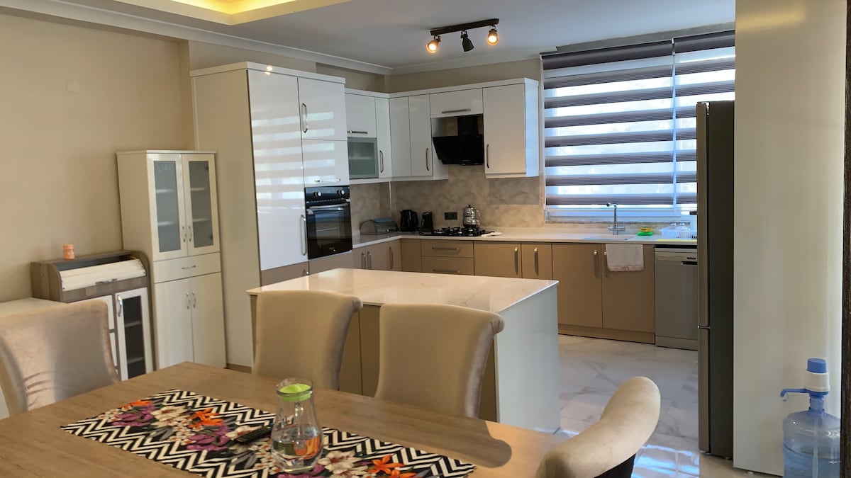 Es ist eine Wohnung, die für Familien und Paare geeignet ist, 25 Meter vom Meer entfernt im Zentrum von Mürefte. Es gibt 1 Schlafzimmer mit Doppelbett und eigenem Bad, ein zweites Zimmer mit einem Doppelschlafsofa. Es gibt ein weiteres Badezimmer mit Waschmaschine. Die Küche ist mit einem Kühlschrank, einer Geschirrspülmaschine und allen grundlegenden Küchenutensilien ausgestattet. Der Balkon mit einem Tisch für vier Personen verbindet die Küche mit dem Wohnzimmer. Im Wohnzimmer gibt es eine Sitzgruppe für 2 Personen, eine Sitzgruppe für 3 Personen, einen runden Tisch und einen Fernseher.