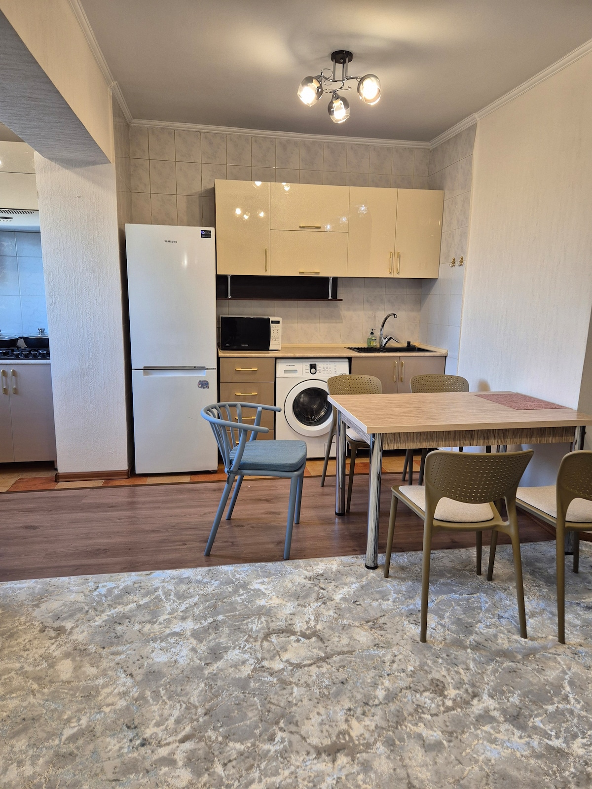 Gemütliche und saubere Wohnung in einer sehr günstigen Lage für Touristen und Flughafen-Transit-Passagiere - 5 Minuten vom Flughafen und zwei Bahnhöfen entfernt. Die nächste Bushaltestelle ist 100 Meter entfernt. 5 Minuten mit dem Taxi ins Stadtzentrum oder 10 Minuten mit den öffentlichen Verkehrsmitteln. (5 Minuten mit dem Bus von der U-Bahn-Station „Tashkent“ entfernt) Entwickeltes Gebiet rund um die Wohnung, wo du alles finden kannst. Es gibt mehrere große und kleine Lebensmittelgeschäfte in der Nähe, auch eine Vielzahl von Cafés, Restaurants und so weiter. Unbegrenztes Highspeed-Internet.