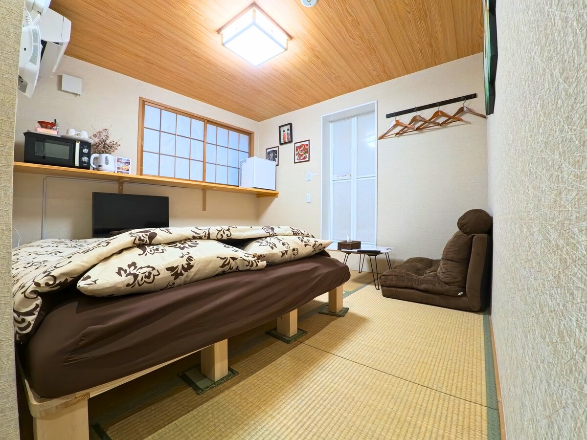 Das Ryokan befindet sich am Bahnhof Aoto, was es zur perfekten Unterkunft für die Edo-Kultur macht.Der Transport ist sehr bequem, und du kannst mit dem Bus mit dem Bus mit dem begrenzten Expresszug mit der Keisei-Linie direkt zu beliebten Orten wie Tokyo Skytree, Asakusa, Ginza, Ueno und Disneyland fahren.Es ist auch eine gute Wahl für internationale Reisende.Von den Flughäfen Haneda oder Narita erreichst du es in nur 48 Minuten.Es ist nur 3 Gehminuten vom Bahnhof Aoto entfernt und die Straße ist flach und leicht zu finden.Es gibt verschiedene Restaurants, Supermärkte und Supermärkte vor dem Bahnhof, und es gibt auch einen 7-11 Supermarkt neben dem Ryokan.Es gibt verschiedene Restaurants, Supermärkte, 100 Yen Geschäfte, Supermärkte, Apotheken usw. in der Nähe, und es gibt auch eine heiße Quelle und einen Bus, der direkt zum Bahnhof in der Nähe fährt, sodass Sie natürliche heiße Quellen in vollen Zügen genießen können. Die Zimmer befinden sich im zweiten Stock und bieten eine sonnige und komfortable Unterkunftsumgebung.Darüber hinaus verfügen die Zimmer über einen kleinen Außenbalkon, auf dem du draußen frische Luft und Sonnenlicht genießen kannst.Dieser Balkon ist ein idealer Erholungsraum, um sich zu entspannen und eine gute Zeit zu haben.Da unser Hotel jedoch keinen Aufzug hat, liegt das Zimmer im 2. Stock.Bitte beachte, dass du die Treppen benutzen musst.