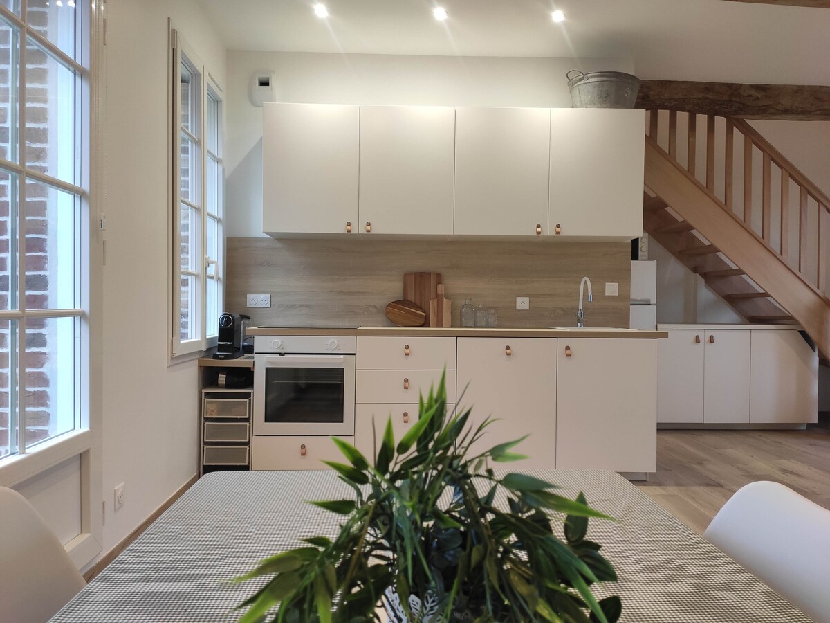 Charmantes einstöckiges Haus mit Holzofen nach Süden nach Westen, privater und geschlossener Garten und Terrasse. Dieser niedliche Ort, eingebettet in ein Nebengebäude des Hauses der Eigentümer, liegt am Rande einer ruhigen Gasse mit einem großen Park mit Bäumen, Natur und Wiesen als Nachbarn. Dieser Ort, nicht weit von der Baie de Somme, dem Meer und dem Wald entfernt, ist ideal für ein Wochenende, einen Urlaub oder eine Telearbeit für Paare oder Familien.