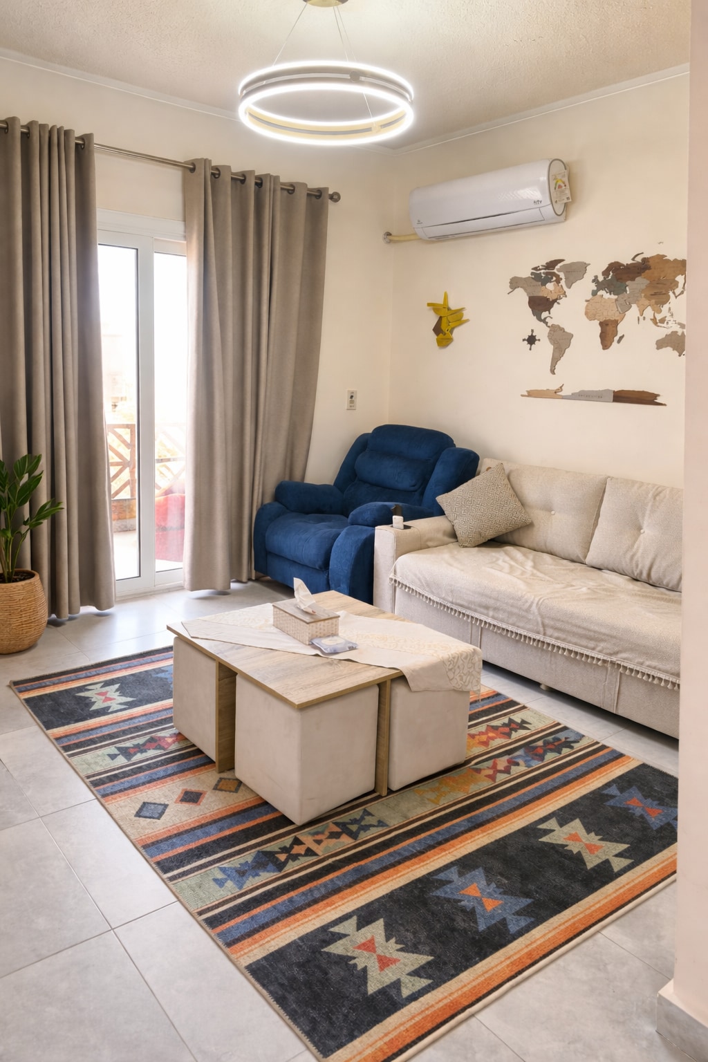 Entfliehe in den Luxus in Mountain View Sokhna – nur 1 Stunde von Kairo entfernt! Dieses stilvolle Chalet mit 2 Schlafzimmern verfügt über einen eigenen Balkon mit herrlichem Blick auf den Pool, einen gemütlichen Wohnbereich, Highspeed-WLAN und eine voll ausgestattete Küche. Genieße das ganze Jahr über das Schwimmen mit Zugang zu einem beheizten Pool und einem Privatstrand. Das Hotel liegt in einem geschlossenen Resort mit Sicherheitsdienst rund um die Uhr und ist perfekt, um sich zu entspannen oder nahegelegene Hotspots zu erkunden. Buche jetzt deinen Aufenthalt – Komfort, Sonne und Stil erwarten dich! Keine gemischten Gruppen.