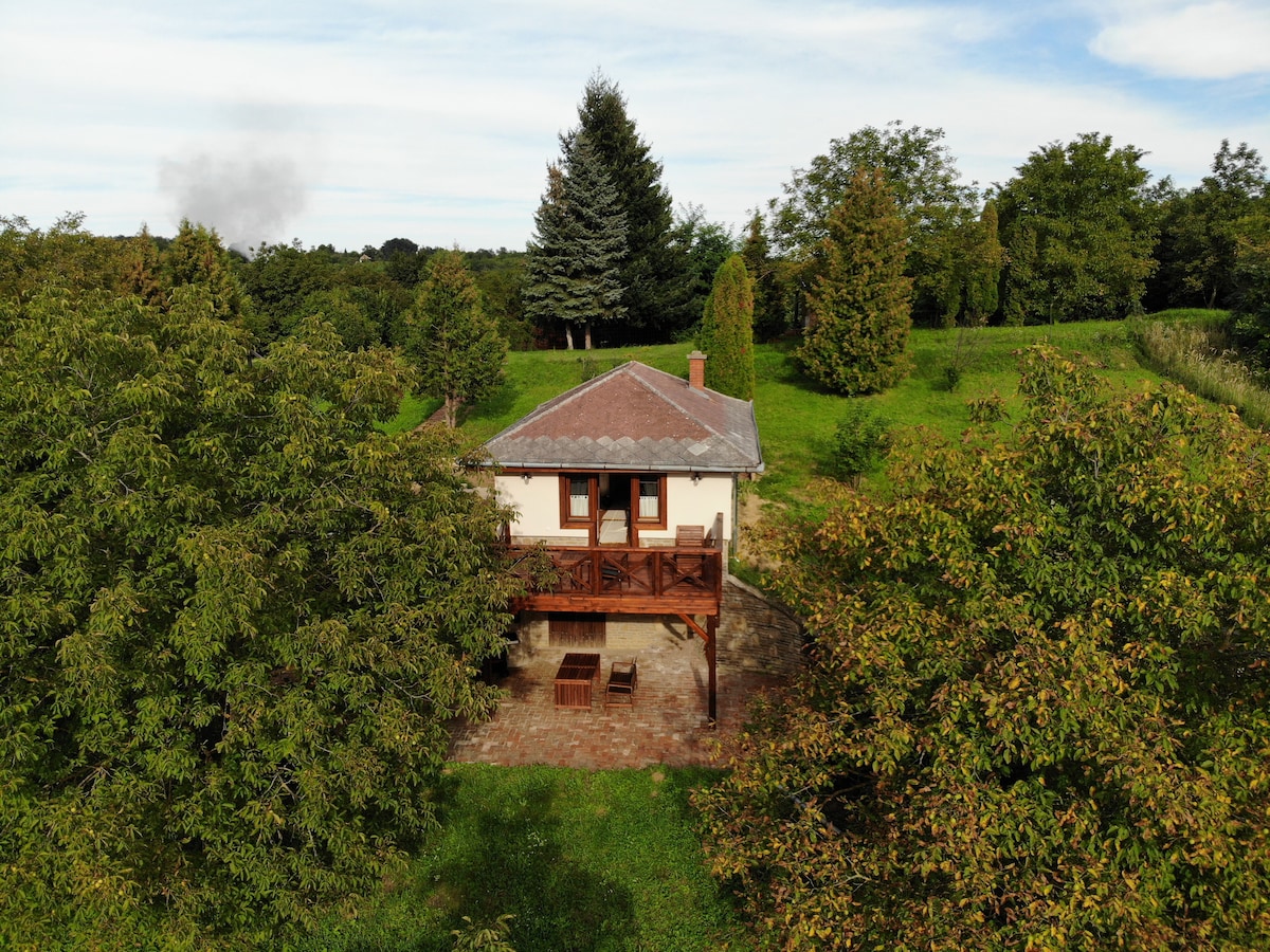 Házunk a gyümölcsösök, szőlők, mezők közepén kínál egy csendes, elvonulásra alkalmas helyet, ahol mégsem kell lemondani a korszerű és letisztult kényelemről. A táj minden évszakban más arcát mutatja, a ház egész évben foglalható. Aki csak csendre vágyik, annak akár ki sem kell mozdulnia, a nap körbejárja az épületet, megunhatatlanul lehet gyönyörködni a környék szépségében, a kilátásban. A házunkban csak 2 személyt tudunk fogadni, gyermekeket (0-16 év) nem áll módunkban fogadni