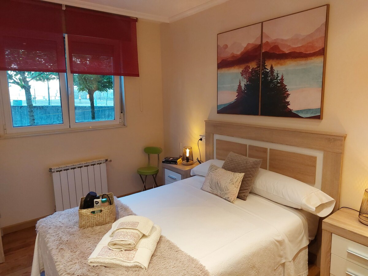 Luxuriöse Wohnung mit Schlafzimmer mit Doppelbett, separater Küche, Wohn-Esszimmer, komplettem Badezimmer mit Badewanne, Balkon mit Blick auf die Grünanlage und überdachtem Parkplatz. Entdecken Sie den Charme von Santiago de Compostela und erholen Sie sich in unserer voll ausgestatteten Wohnung, die weniger als 15 Minuten zu Fuß vom Stadtzentrum entfernt ist. Die Wohnung ist mit hochwertigen Möbeln und Geräten ausgestattet und befindet sich in der Nähe des Busbahnhofs und des Bahnhofs.