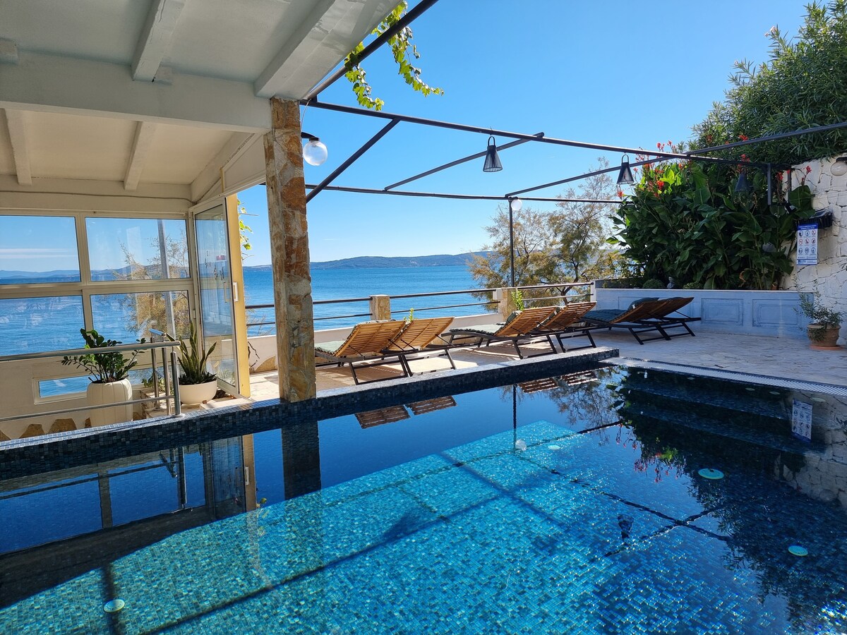 Royal ist eine neue, moderne und luxuriös renovierte Wohnung mit Whirlpool, 50 Meter vom Strand entfernt. Sie ist 50 Quadratmeter groß und verfügt über eine 30 Quadratmeter große Terrasse. Sie verfügt über 2 Schlafzimmer, ein Wohnzimmer, eine voll ausgestattete Küche mit einem Essbereich, ein Badezimmer mit toller Dusche, Grillmöglichkeiten, eine Garage (1 Auto), einen Flachbildfernseher in jedem Zimmer und kostenfreies WLAN. Bietet eine große Terrasse mit offenem Meerblick auf die umliegenden Inseln. Tauchen kann in der Nähe genossen werden. Trogir ist 5 km und der Flughafen Split 8 km von der Unterkunft entfernt.