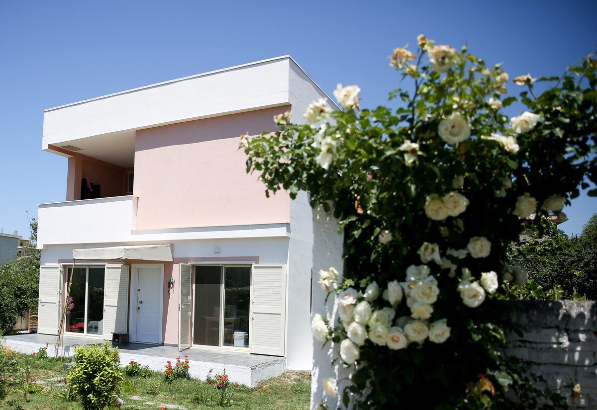 Die Villa Hana bietet die Kombination aus Gelassenheit, Privatsphäre und dem albanischen traditionellen Dorfgeist, in der Nähe von weißen Sandstränden und kristallklarem Wasser. Diese Villa bietet 160 m2 und verfügt über ein Wohnzimmer, 3 Schlafzimmer, 2 Badezimmer und Toilettenartikel, umgeben von 500 m2 Garten mit Gemüse, Essbereich, Spielen für Gäste. Komfort von zu Hause, 35 km von der Hauptstadt Tirana und 27 km vom Flughafen entfernt. Nur 5 km von den Stränden Hamallaj und Lalezi entfernt. In der Nähe der Villa (15 km) befindet sich das Kap von Rodoni.