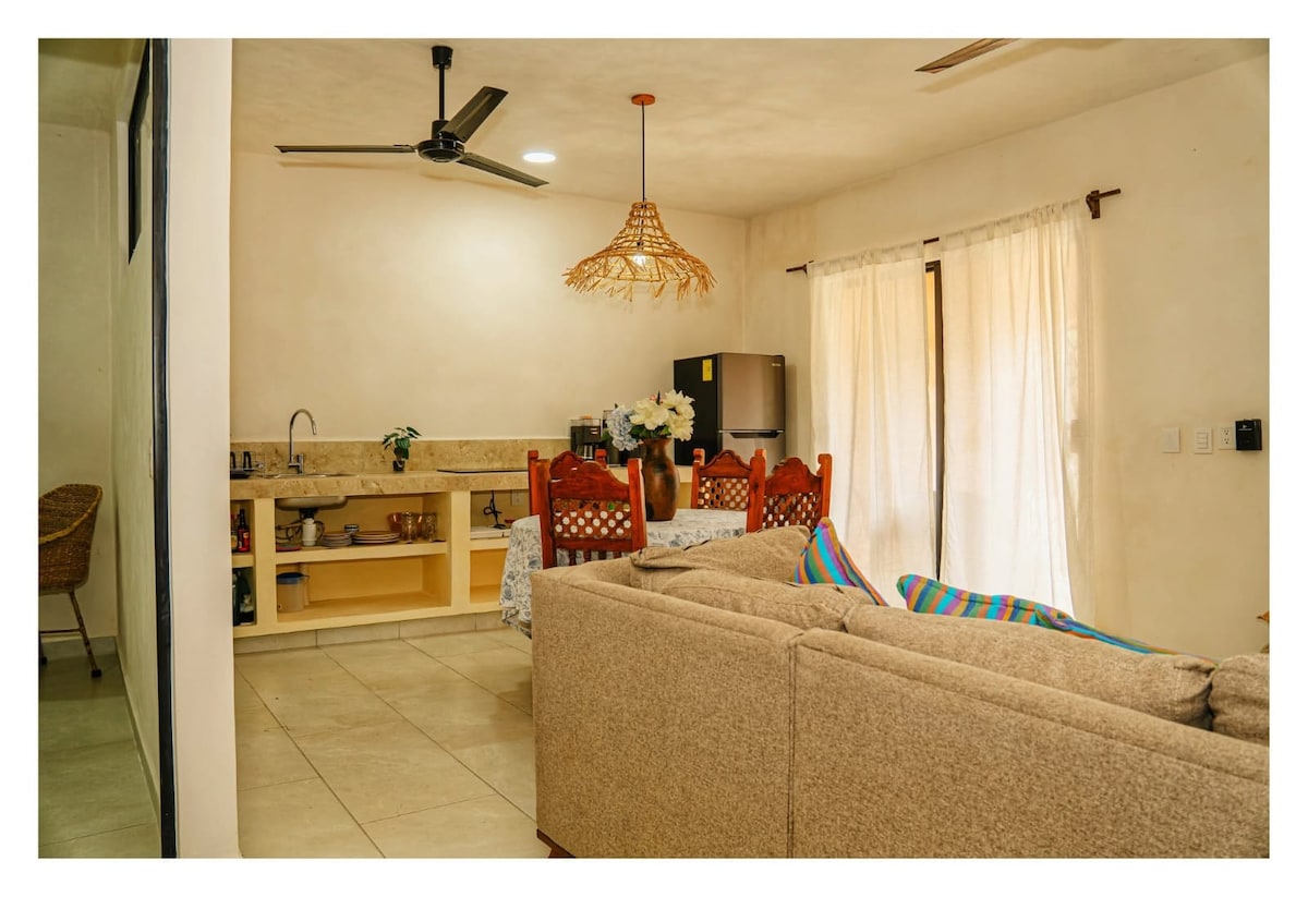 Neu gebautes Haus eines Schlafzimmers in Casa Xalli, mit Teilblick auf die Lagune und den Strand , 100 Meter vom Strand , Restaurants, Geschäften und dem GEMEINSAM GENUTZTEN WHIRLPOOL ENTFERNT Inklusive Schlafzimmer (ein Kingsize-Bett) , ein Badezimmer, ein Doppelschlafsofa, eine Küche , ein Gemeinschafts-Whirlpool (Dachterrasse)