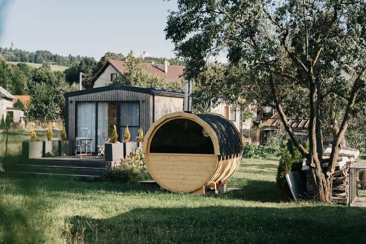 Entfliehe mit der Familie oder bei einem romantischen Kurzurlaub ins Chalet Wolf, eine magische, autarke Hütte im Tatra-Wald. Vollständig netzunabhängig und solarbetrieben (im Winter ist ein achtsamer Stromverbrauch erforderlich, Generator kann erforderlich sein). Erwarte einen atemberaubenden Blick auf die Tatra, Sonnenuntergänge, Waldstille, gemütliche Abende am Kamin und Wanderwege von der Hütte aus. Entspanne dich im Whirlpool unter den Sternen. Skigebiete innerhalb von 25 Autominuten. 4x4 Auto empfohlen. Whirlpool + 80 €/Aufenthalt.