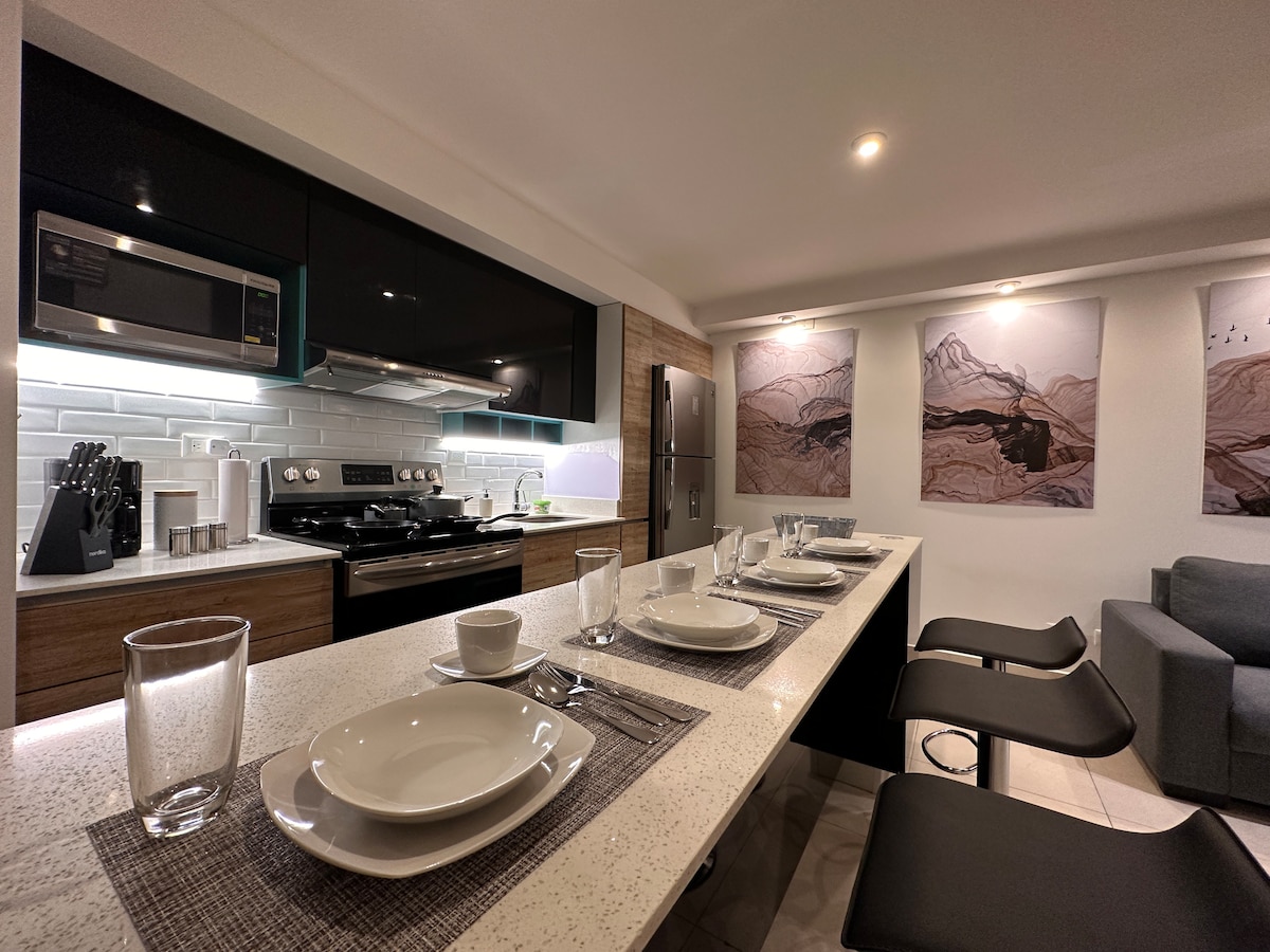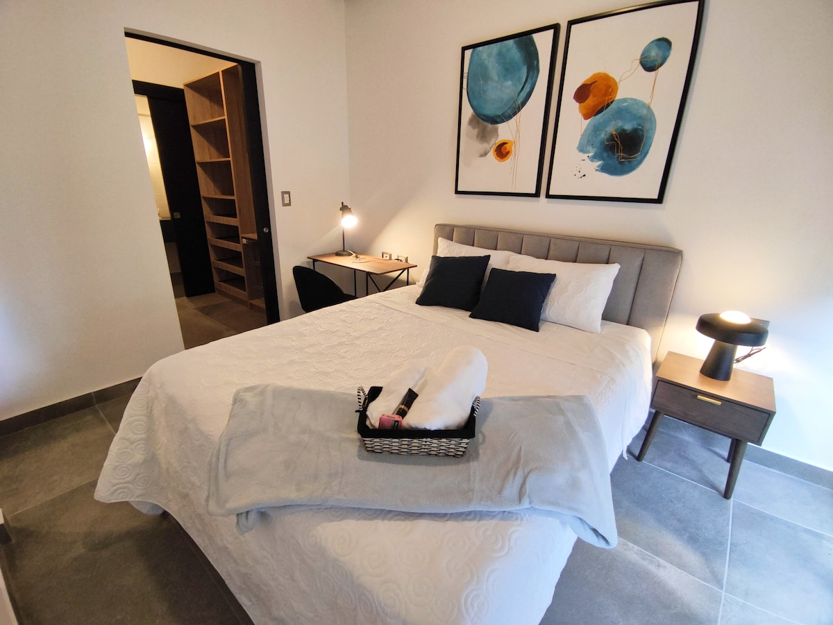 Exklusive und voll ausgestattete Wohnung im Herzen von Cayalá. Entworfen für diejenigen, die Komfort, Privatsphäre und eine erstklassige Lage suchen. Im Gegensatz zu anderen Räumen hast du hier absolute Privatsphäre. Kostenloser Parkplatz innerhalb des Komplexes. Die Annehmlichkeiten des Pools, des Spas und des Fitnessraums machen deinen Aufenthalt zu einem kompletten Erlebnis. Du kannst auch leicht auf die neue US-Botschaft zugreifen, ideal, wenn du zu deinem Termin kommst. Wir freuen uns darauf, dass du Cayalá erlebst.