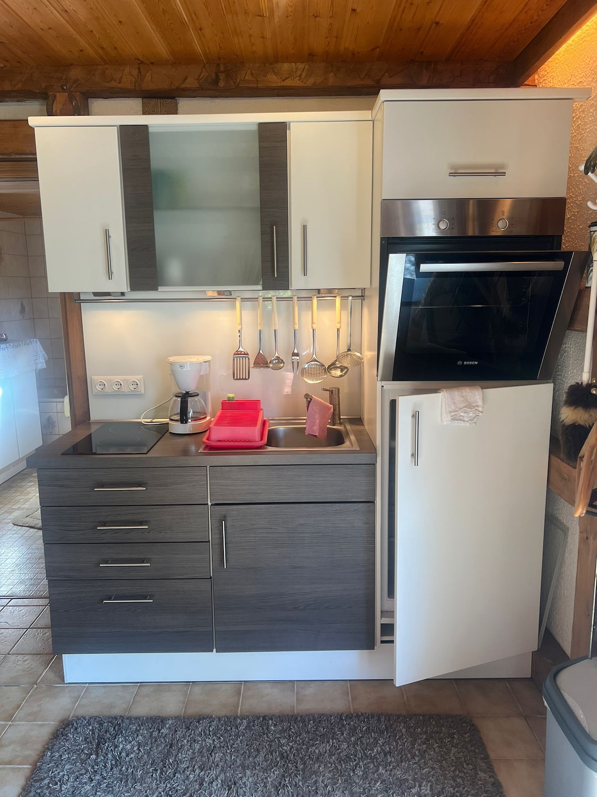 So lässt es sich im Urlaub aushalten: Drei Doppelzimmer und drei Duschbäder, eine super ausgestattete Küche, Kamindiele, Esszimmer, kleine Pantryküche im Hanggeschoss, ein großer möblierter Terrassenbereich und von überall aus ein traumhafter Blick auf die Harzer Berge. Ein Doppelzimmer und ein Duschbad befinden sich im Hanggeschoss und sind über eine rustikale Treppe aus dem Erdgeschoss erreichbar.
