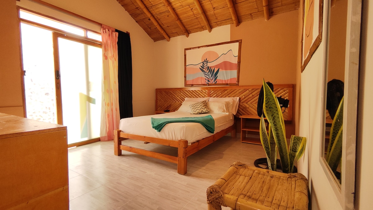 Nuestro Bungalow King se destaca por su excelente ubicación y privacidad, es el más cercano al mar y cuenta con un balcón privado. Este espacio rústico y acogedor tiene una cama King size, ventilador, frigobar y todos los amenities necesarios para una experiencia única.