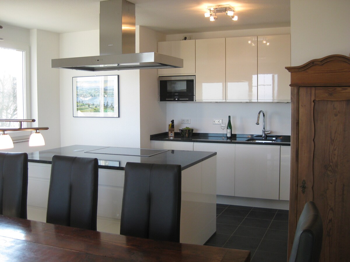 Wohnung mit einem Zimmer mit Doppelbett und Blick auf den schönen Untersee. Die Wohnung besitzt eine eigene Küche mit allen nötigen Kochutensilien. Im Wohnzimmer befindet sich ein grosses Schlafsofa für zwei Personen. Das moderne Studio wird durch einen grossen Sitzplatz Richtung Süden und einem privaten Balkon Richtung See abgerundet. Die Wohnung ist ruhig gelegen und bietet viel Privatsphäre.